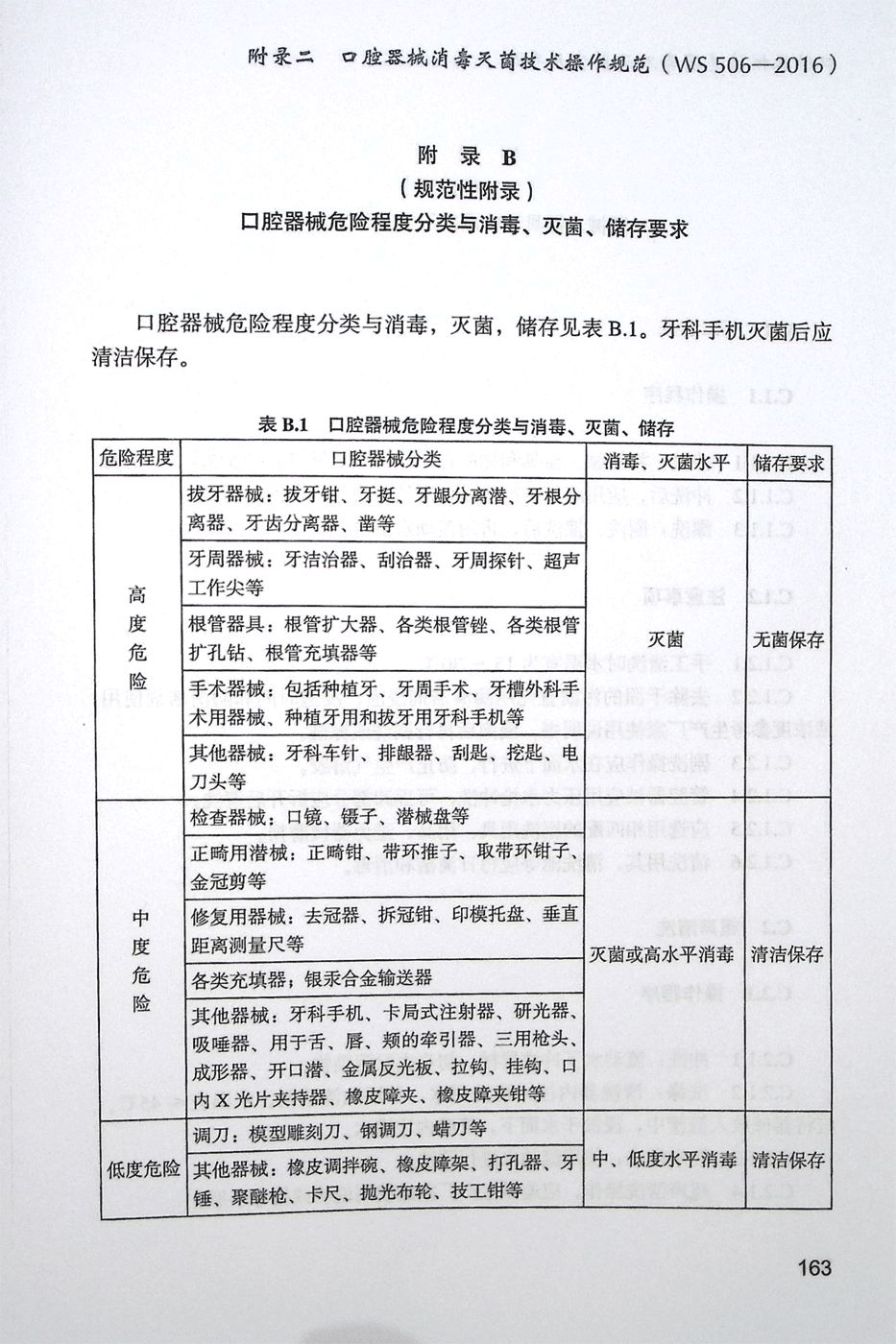 附录B 口腔器械危险程序分类与消毒、灭菌、储存要求