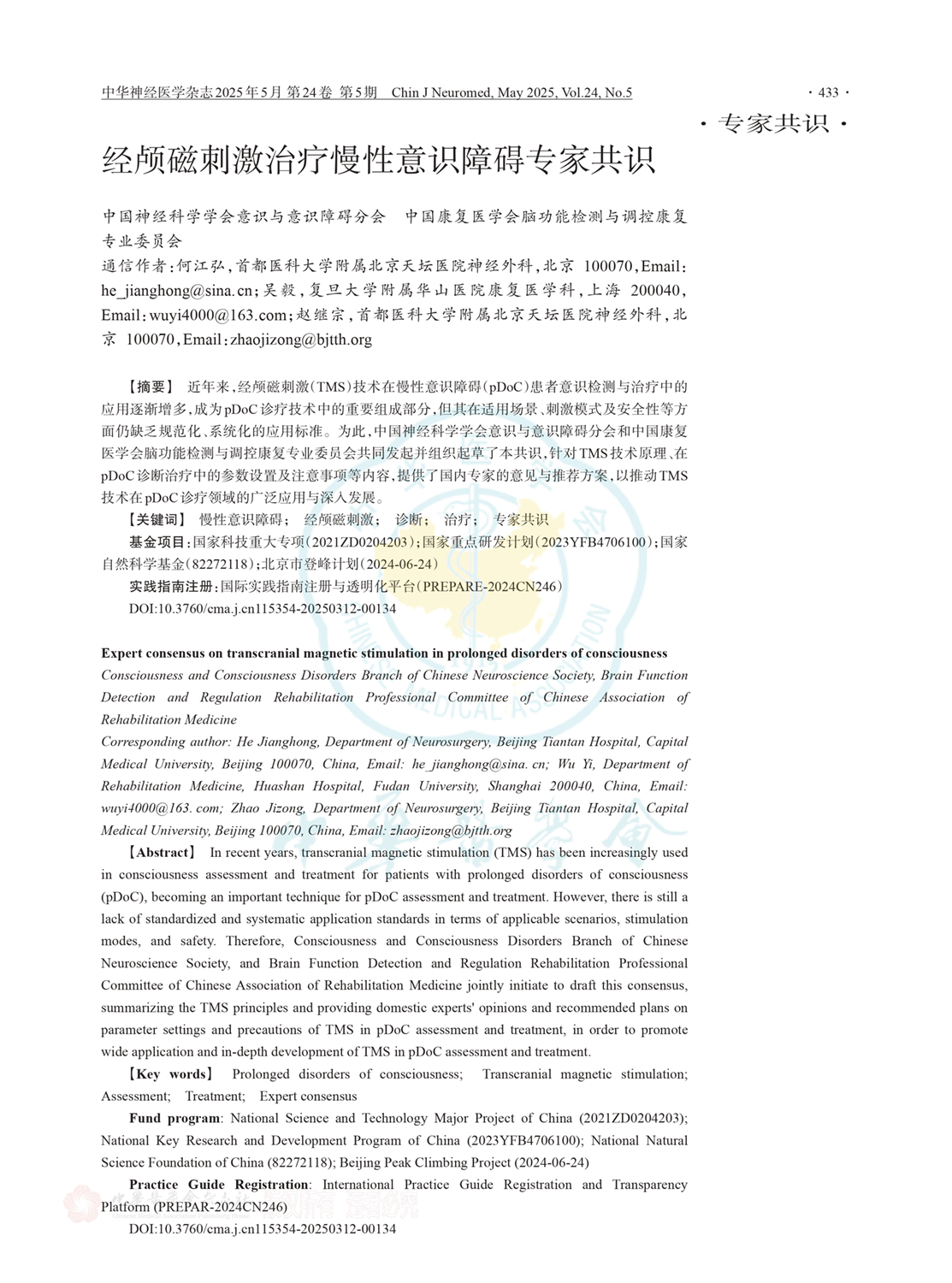 经颅磁刺激治疗慢性意识障碍专家共识(2025年)