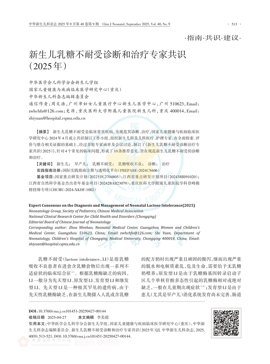 新生儿乳糖不耐受诊断和治疗专家共识(2025年)