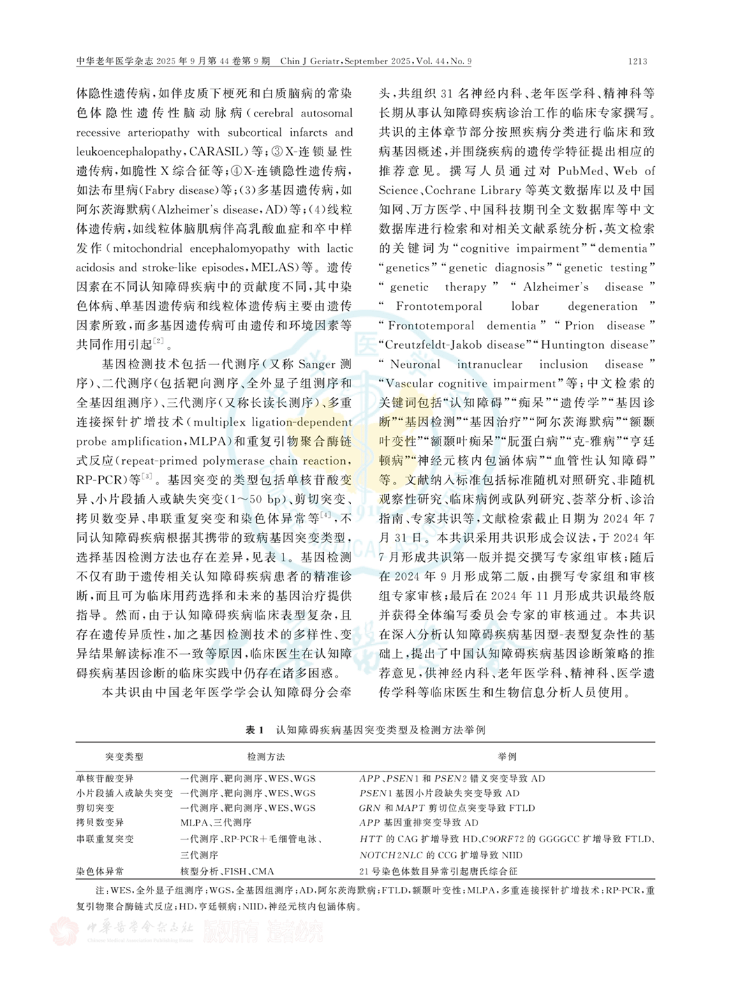 认知障碍疾病基因诊断策略中国专家共识(2025版)