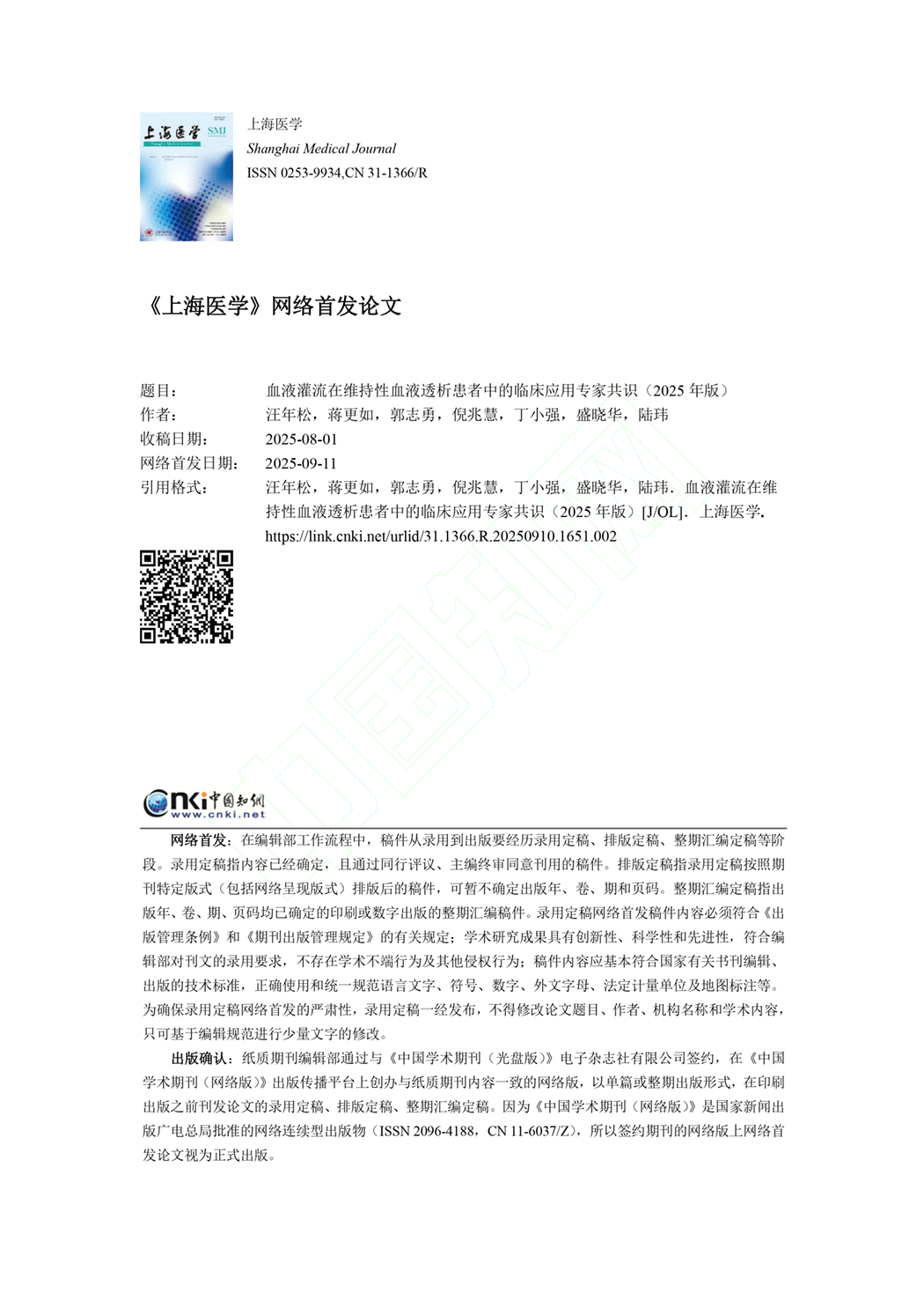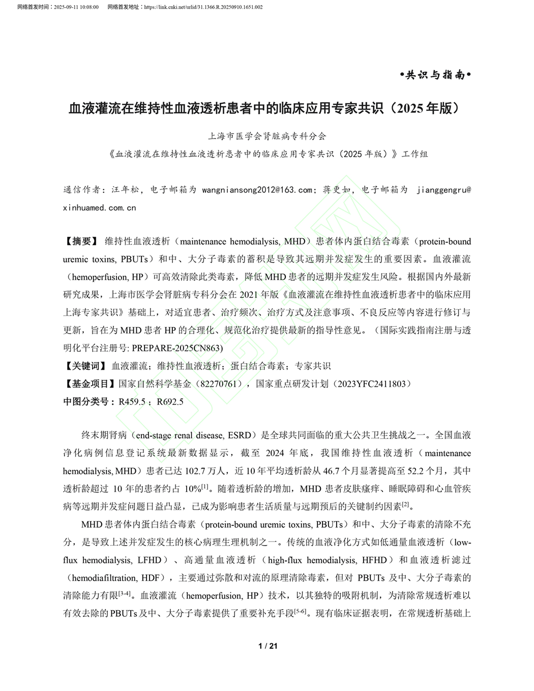 血液灌流在维持性血液透析患者中的临床应用专家共识(2025年版)