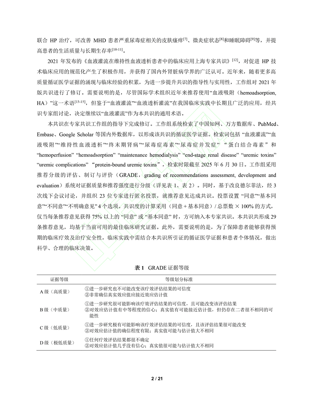 血液灌流透析患者共识