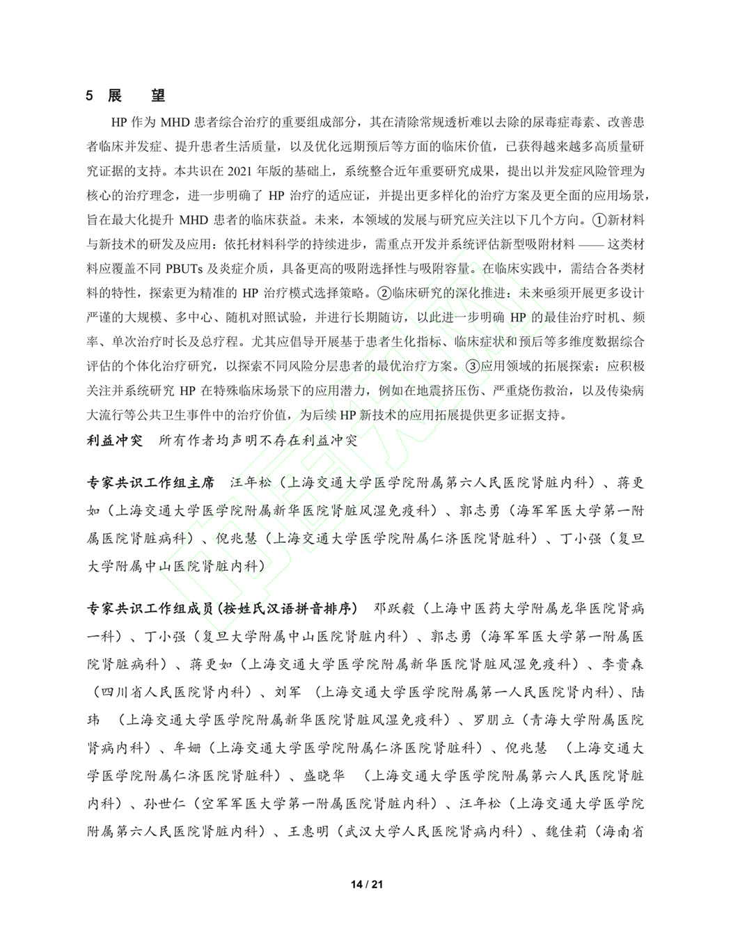 血液灌流透析患者共识
