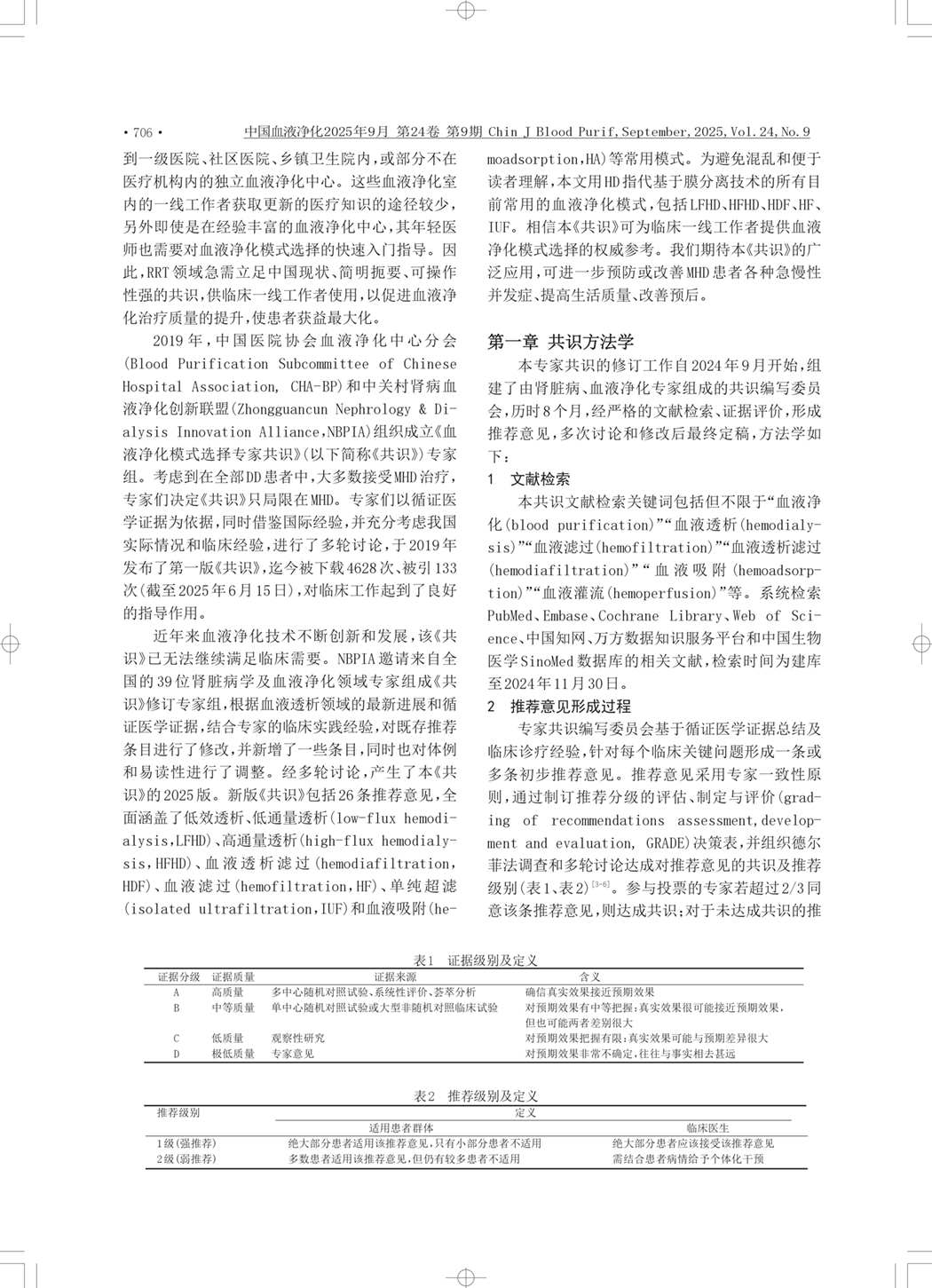 第二章 推荐意见:血液透析充分性,低效透析,低通量透析