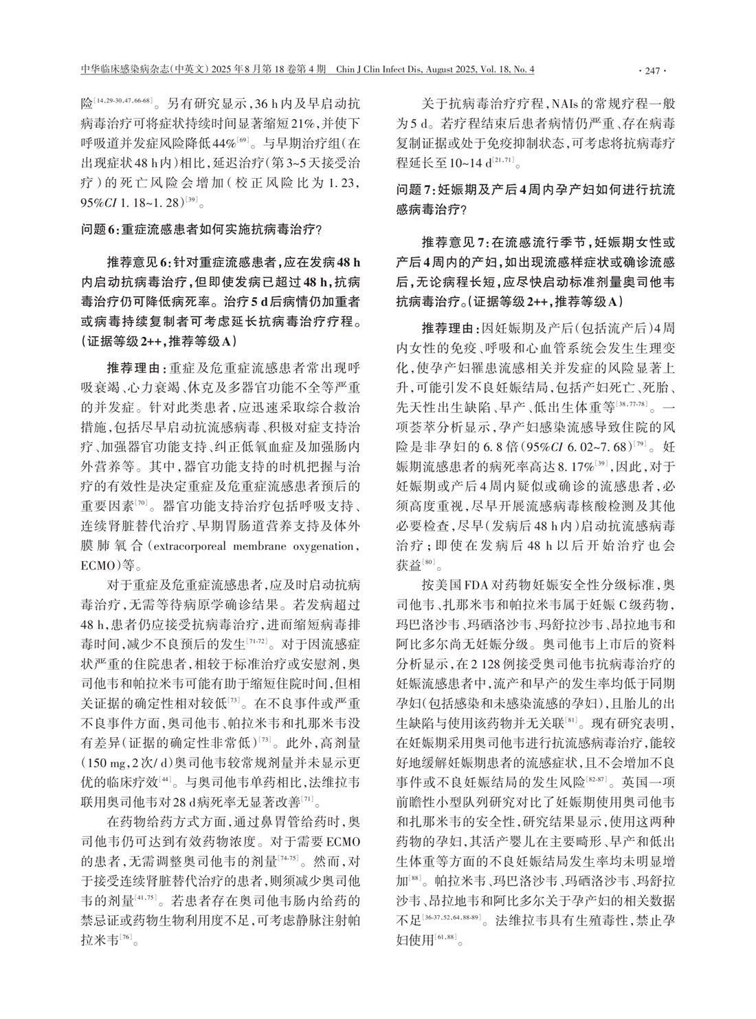 问题6:重症流感如何抗病毒治疗 问题7:妊娠期及产后4周内抗流感治疗