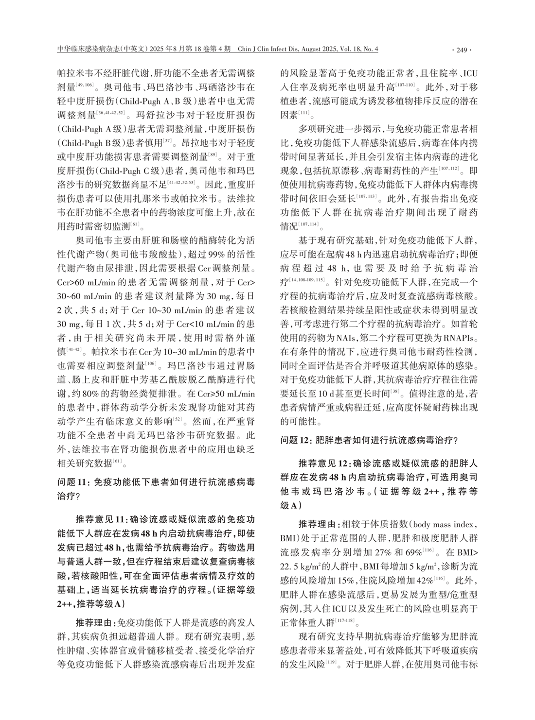 问题11:免疫低下抗病毒治疗 问题12:肥胖患者抗流感病毒治疗