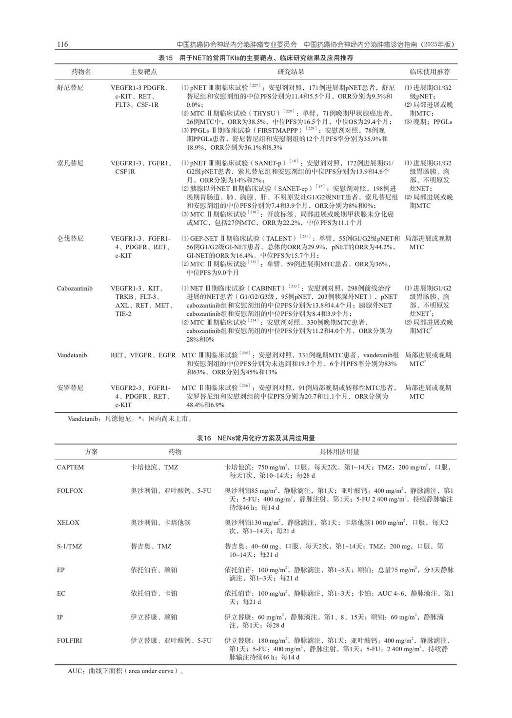 TKIs靶点临床研究推荐,NENs化疗方案用量