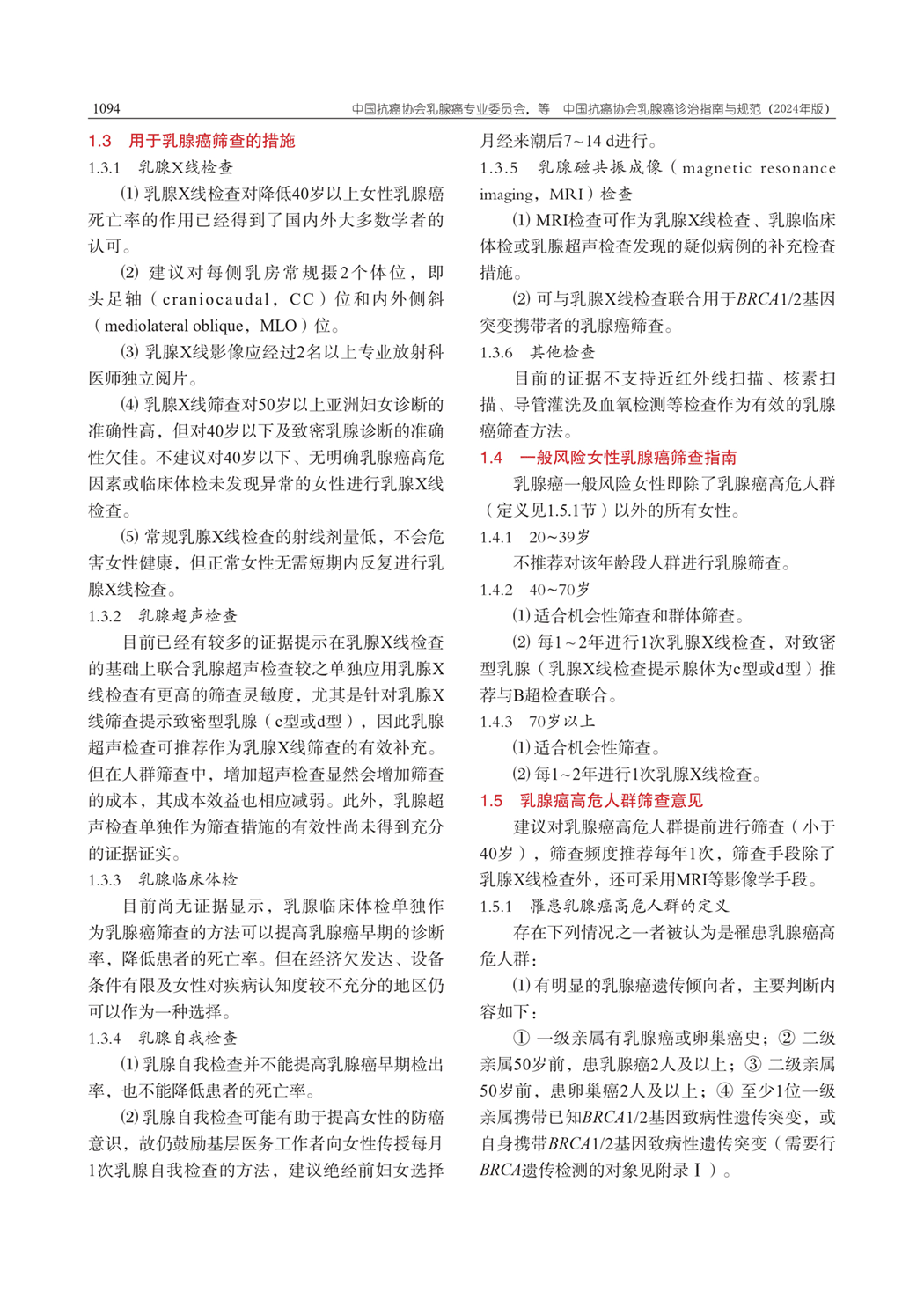 中国抗癌协会乳腺癌诊治指南与规范(2024年版)