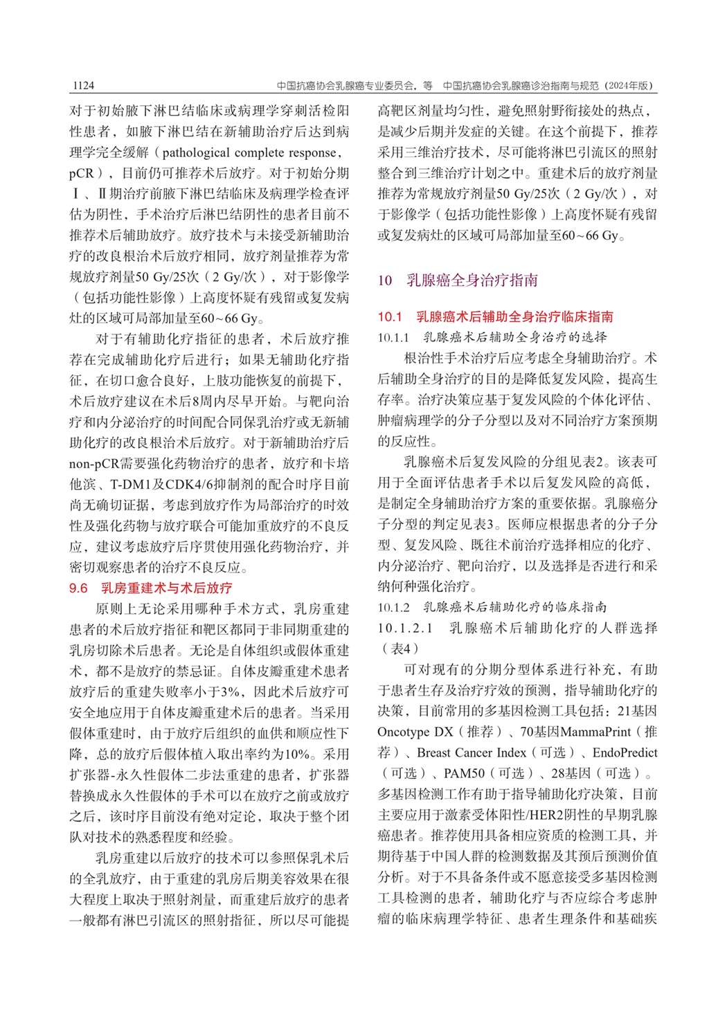 10、乳腺癌全身治疗指南:术后辅助全身治疗临床指南(1)