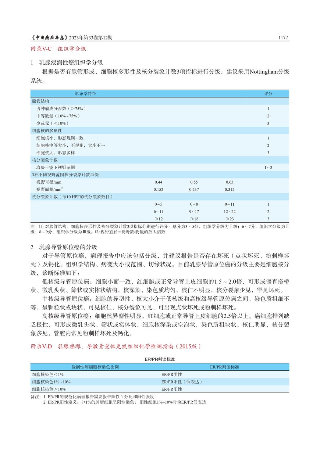 附录V-C 组织学分级 附录V-D乳腺癌雌、孕激素受体免疫组织化学检测指南