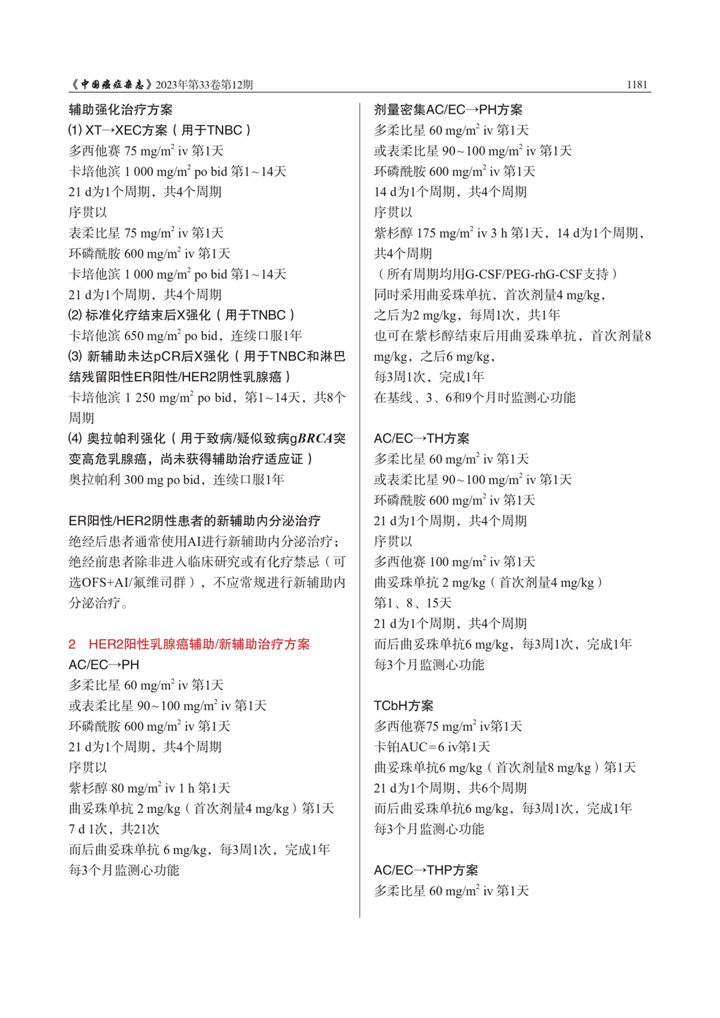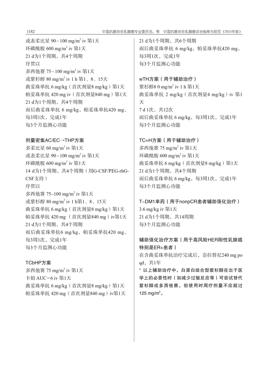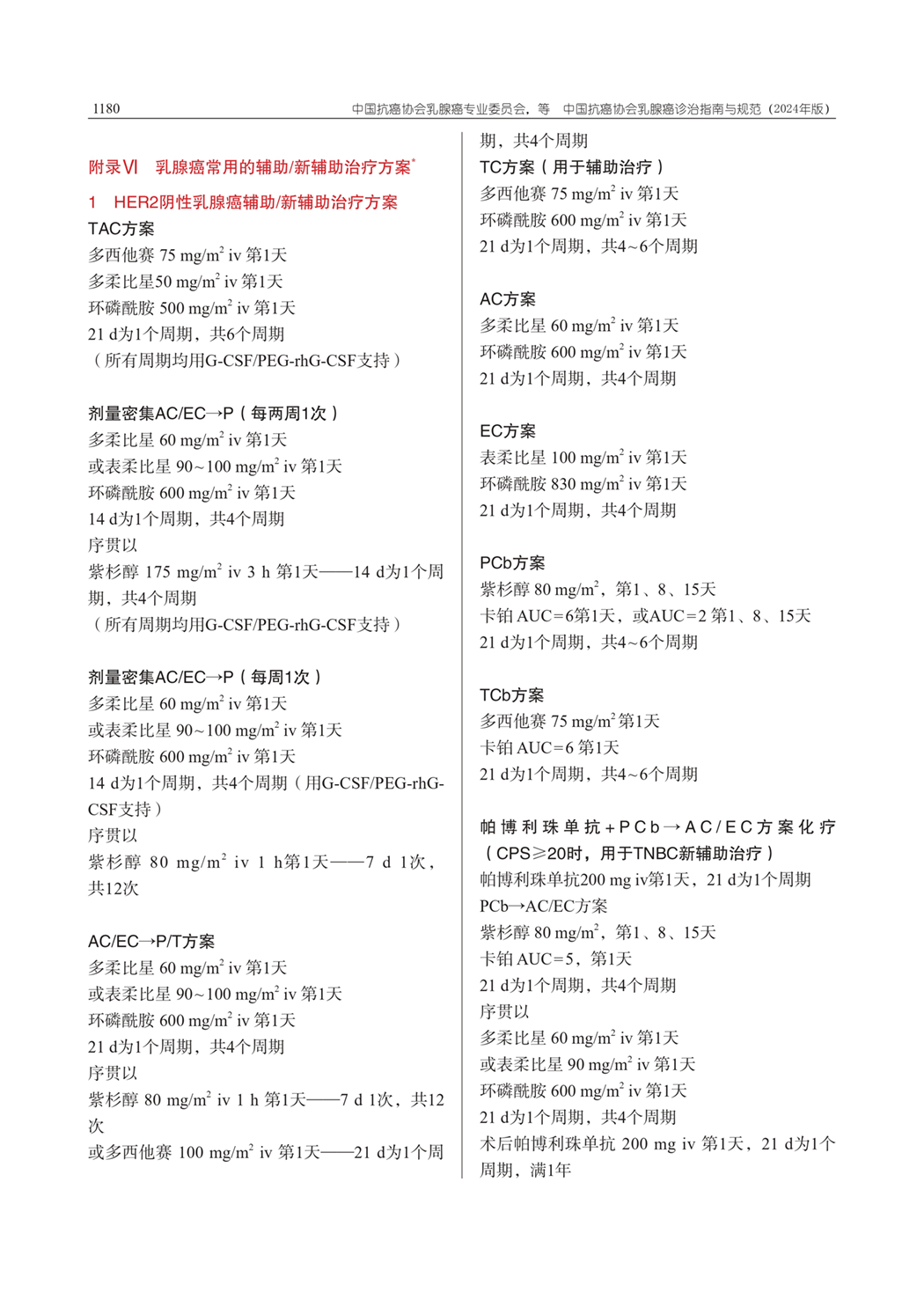 附录Ⅵ 乳腺癌常用的辅助/新辅助治疗方案
