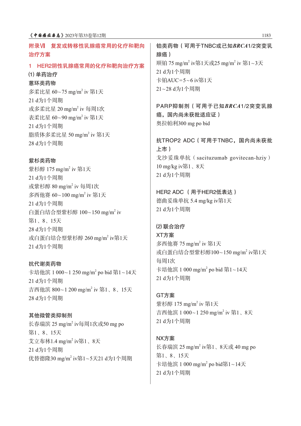 附录Ⅶ 复发或转移性乳腺癌常用的化疗和靶向治疗方案