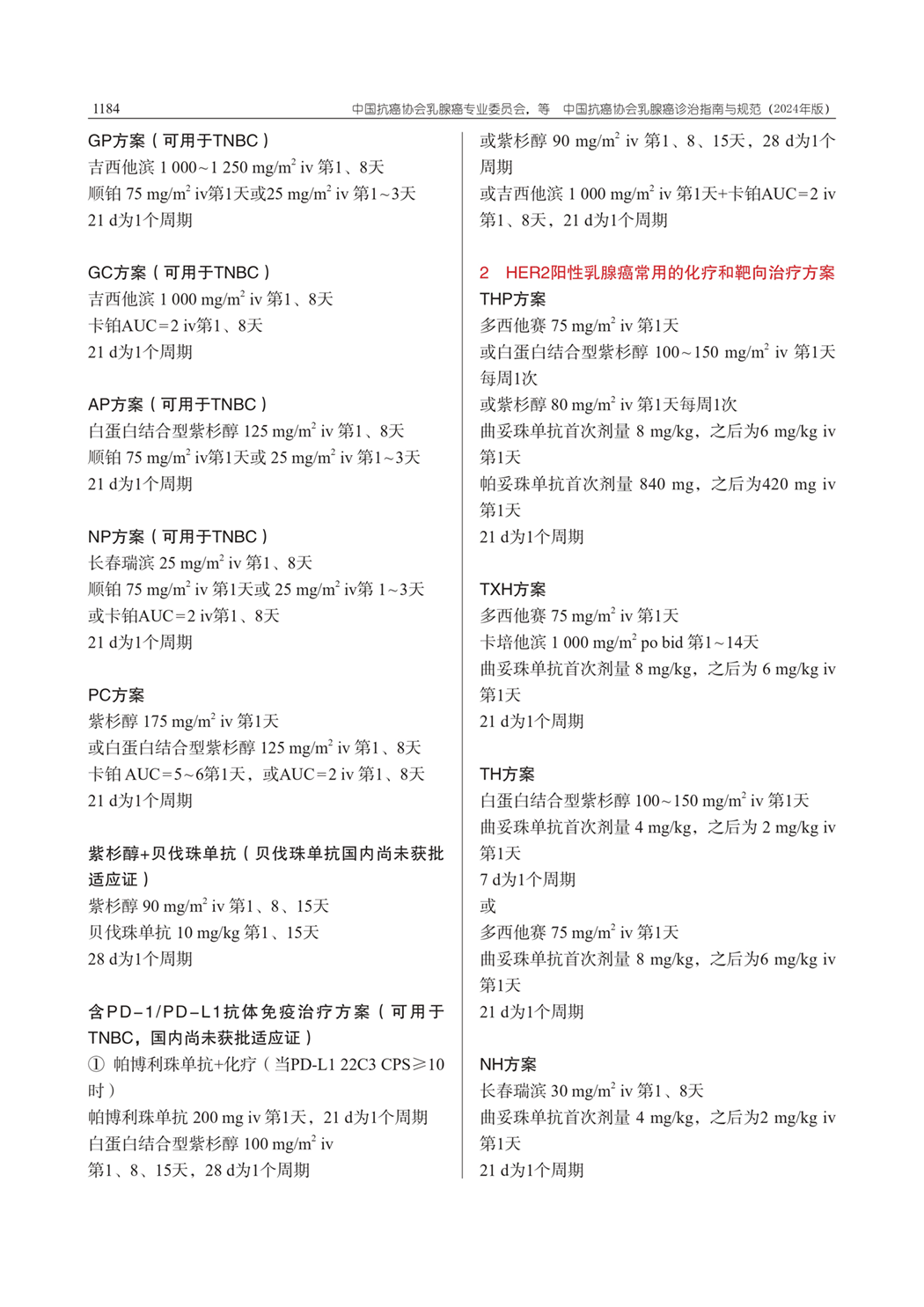 附录Ⅵ 乳腺癌常用的辅助/新辅助治疗方案