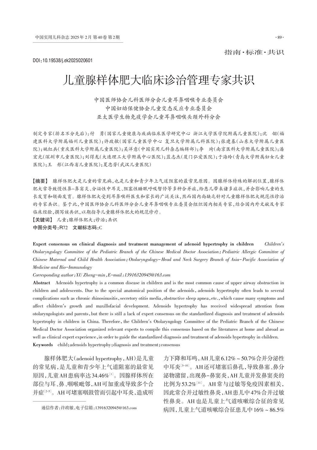 儿童腺样体肥大临床诊治管理专家共识(2025年)