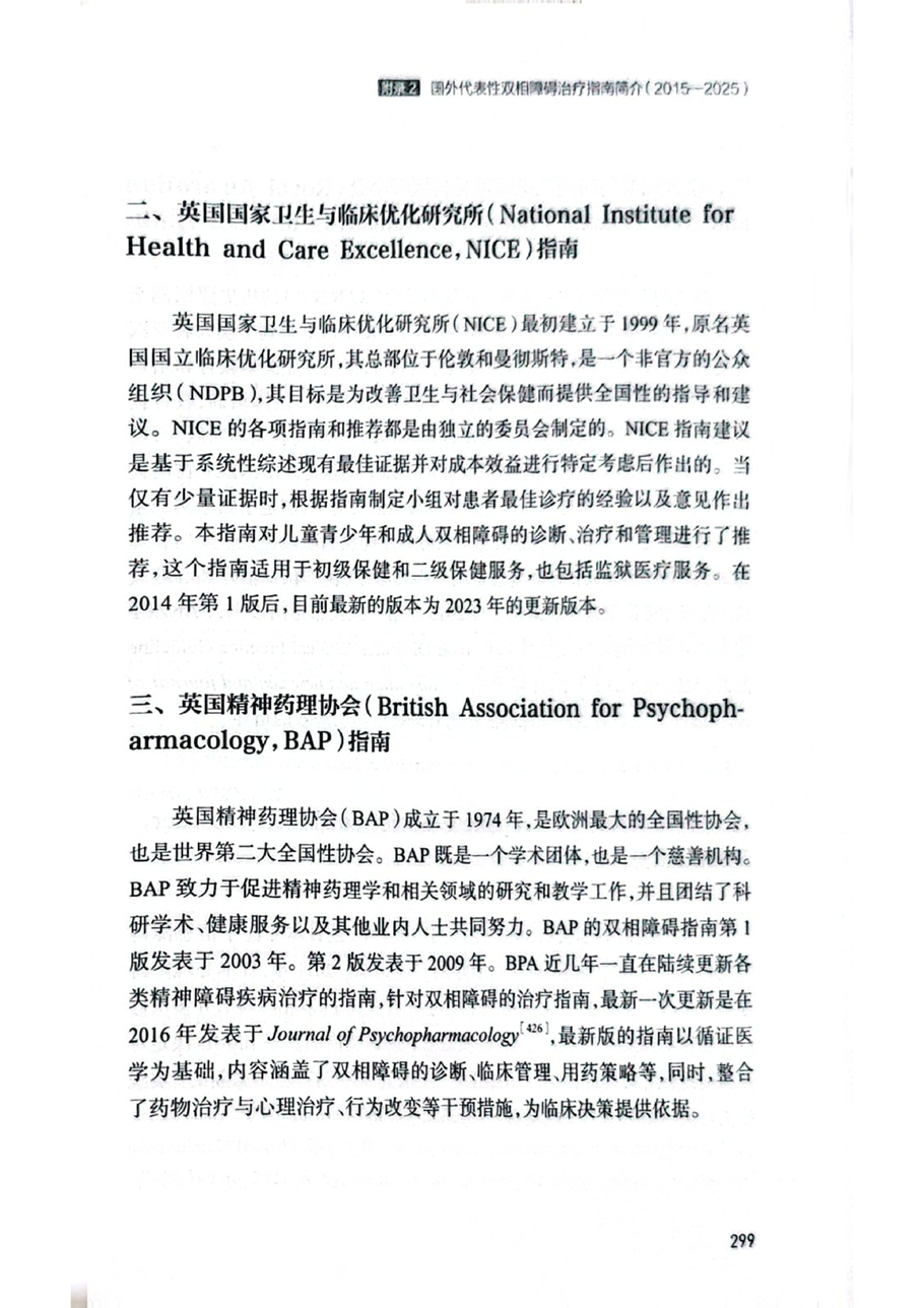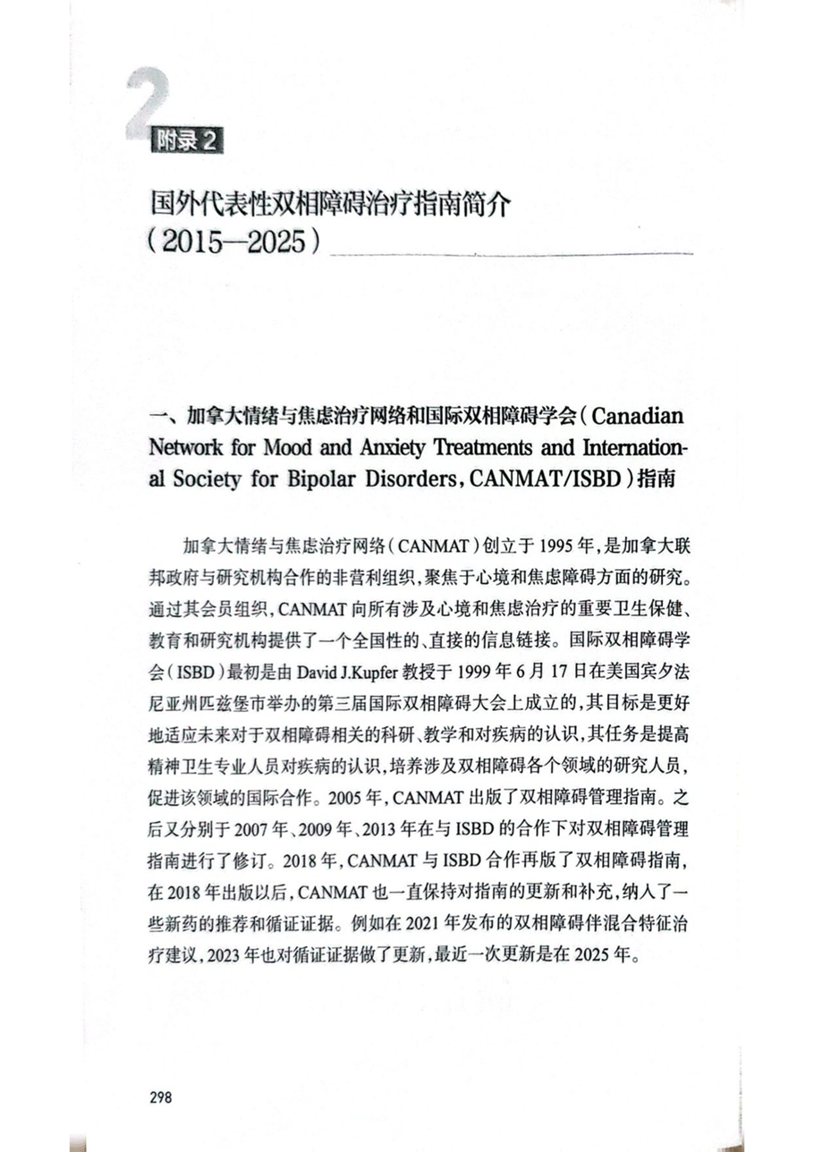 附录2 国外代表双相障碍治疗指南简介(2015-2025)
