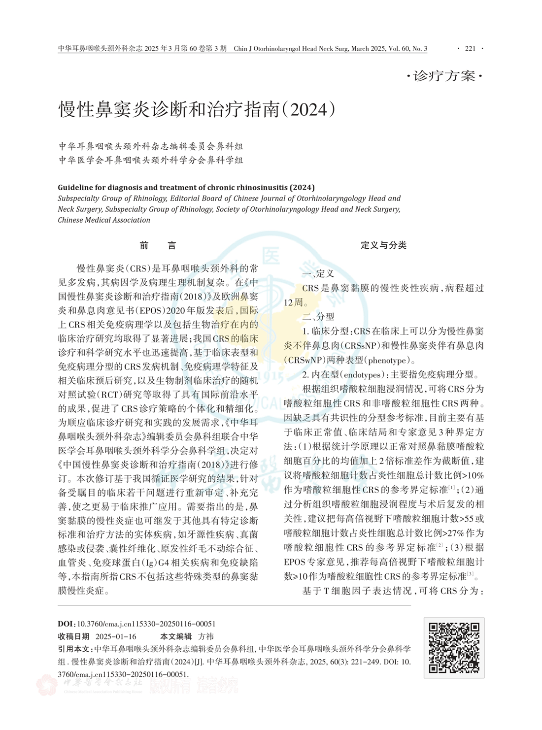 慢性鼻窦炎诊断和治疗指南(2024年)