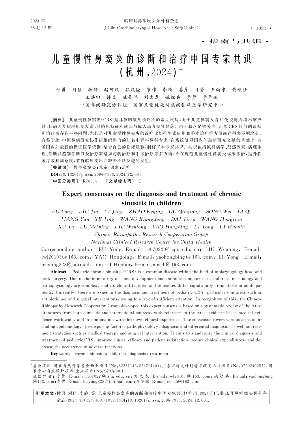 儿童慢性鼻窦炎诊断和治疗中国专家共识(2024)