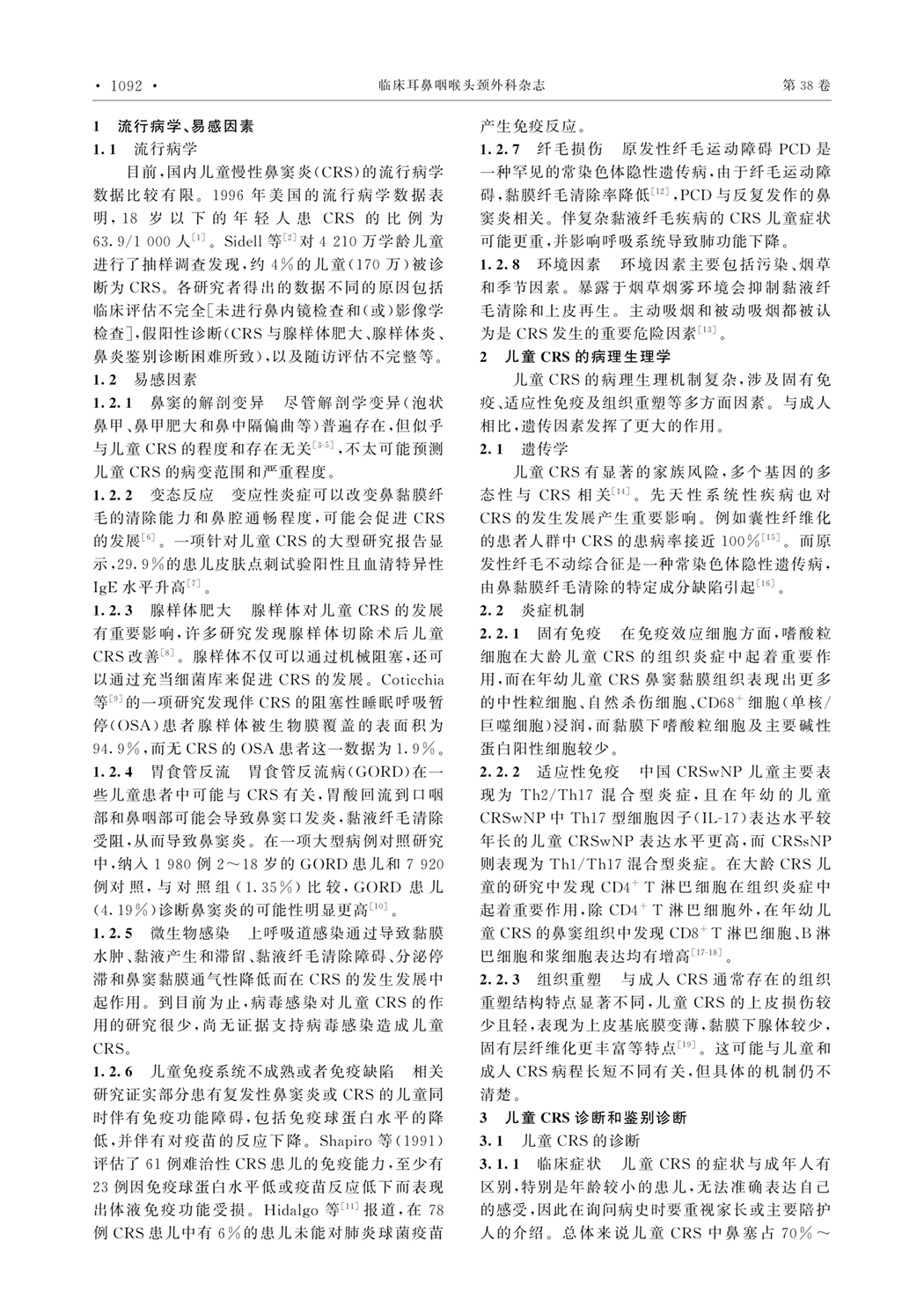 1、流行病学 2、儿童CRS的病理生理学 3、儿童CRS诊断