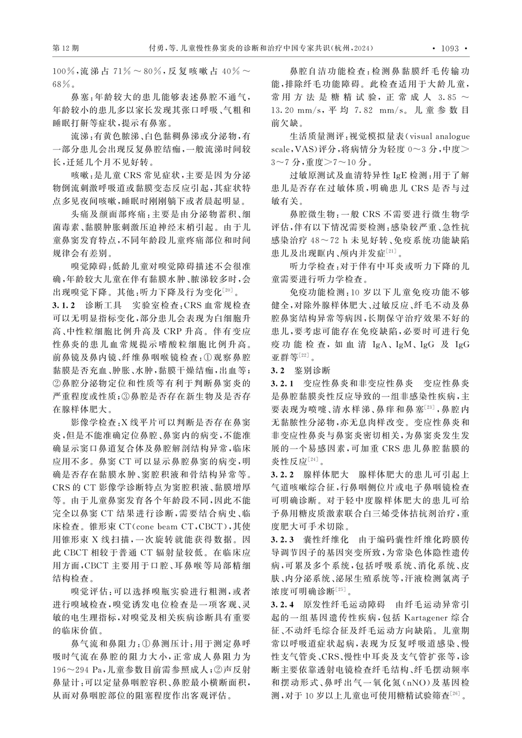儿童慢性鼻窦炎诊断和治疗中国专家共识(2024)
