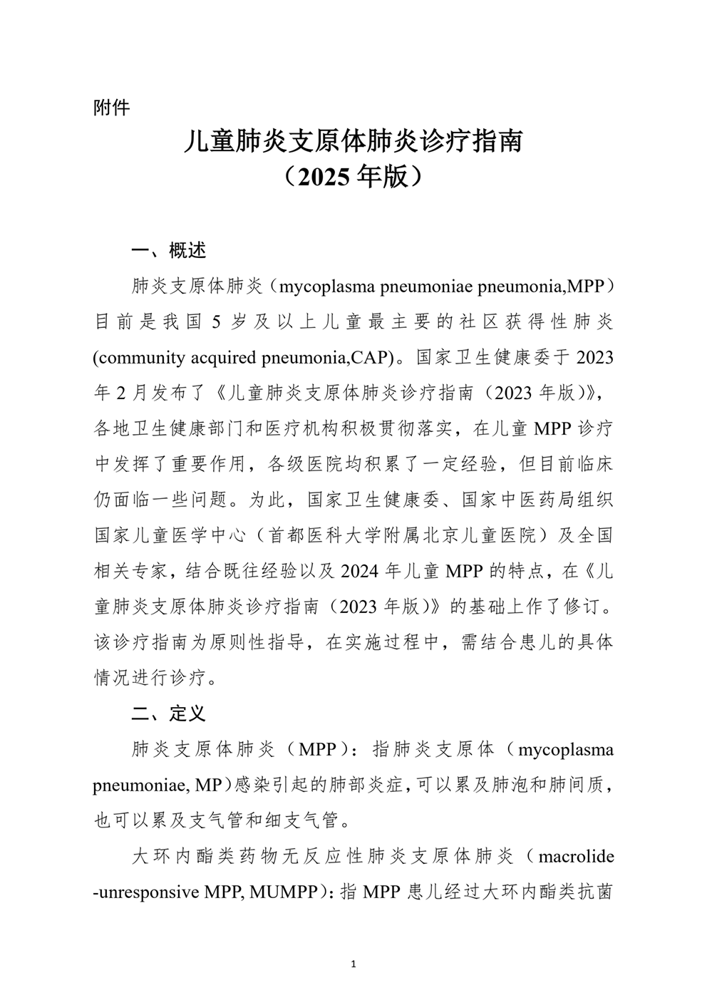 儿童肺炎支原体肺炎诊疗指南(2025年版)