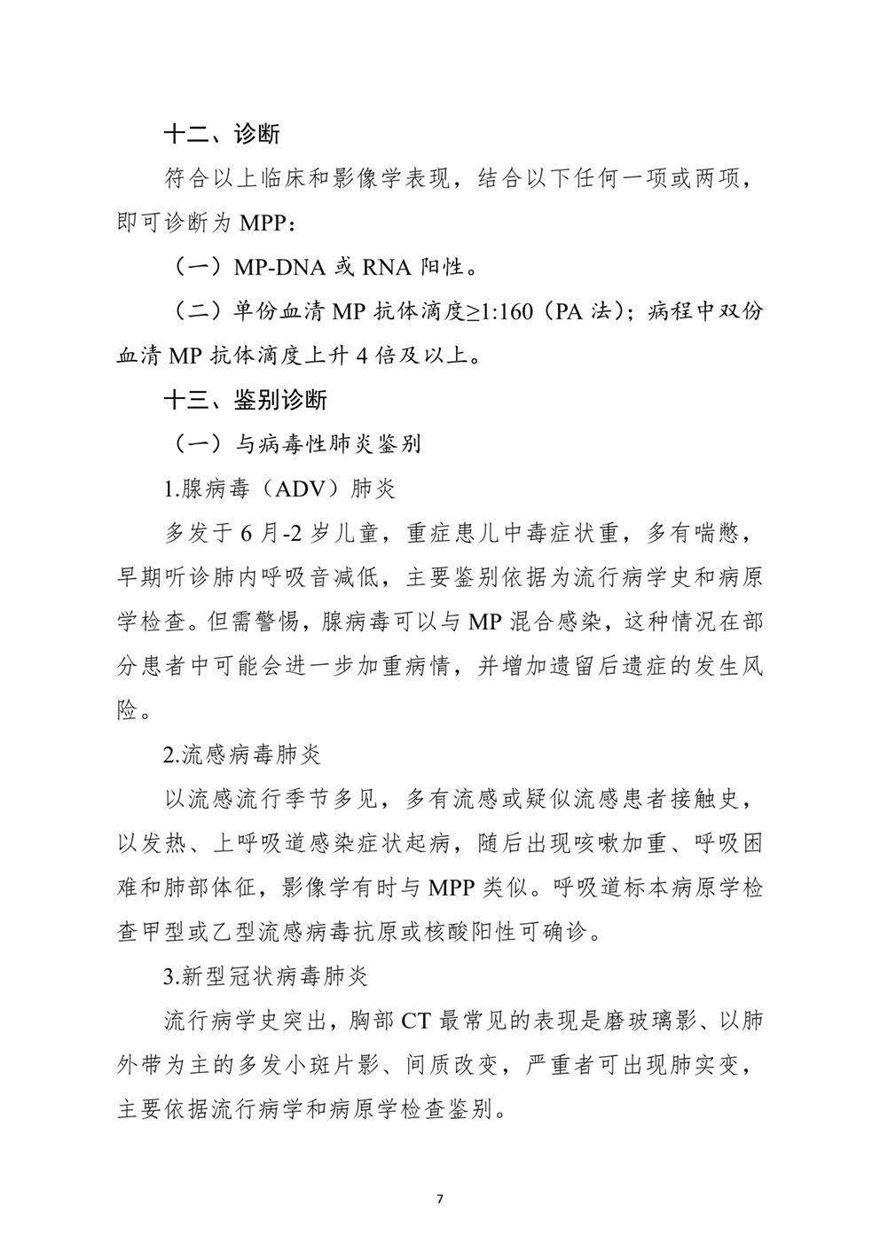 诊断、MP-DNA或RNA阳性、鉴别诊断
