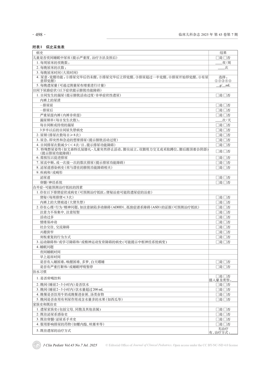 附表1 病史采集表(完结)