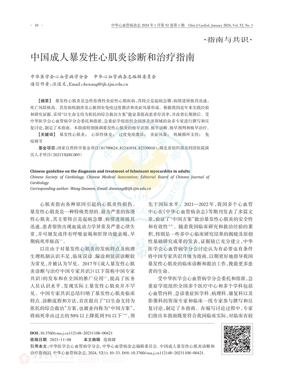 中国成人暴发性心肌炎诊断和治疗指南(2024年)