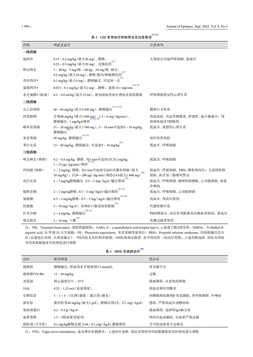 表2 CSE治疗药物用法及注意事项 表3 SRSE非麻醉治疗