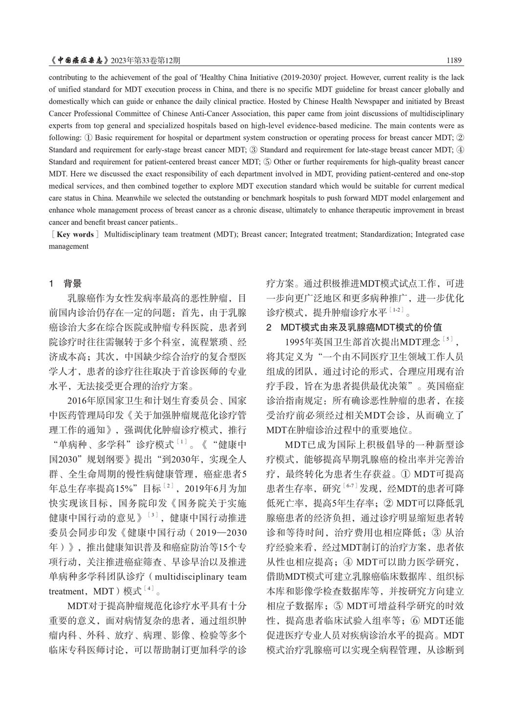 1、背景 2、MDT模式由来及乳腺癌MDT模式的价值
