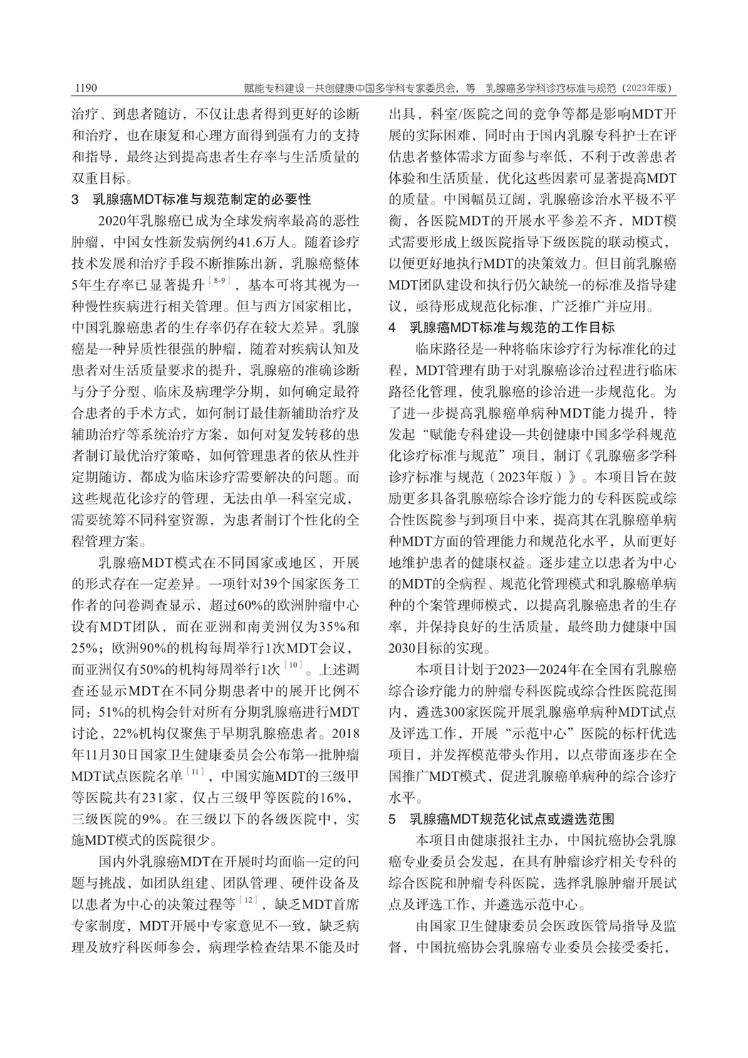 3、乳腺癌MDT标准与规范制订的必要性 4、工作目标 5、遴选范围
