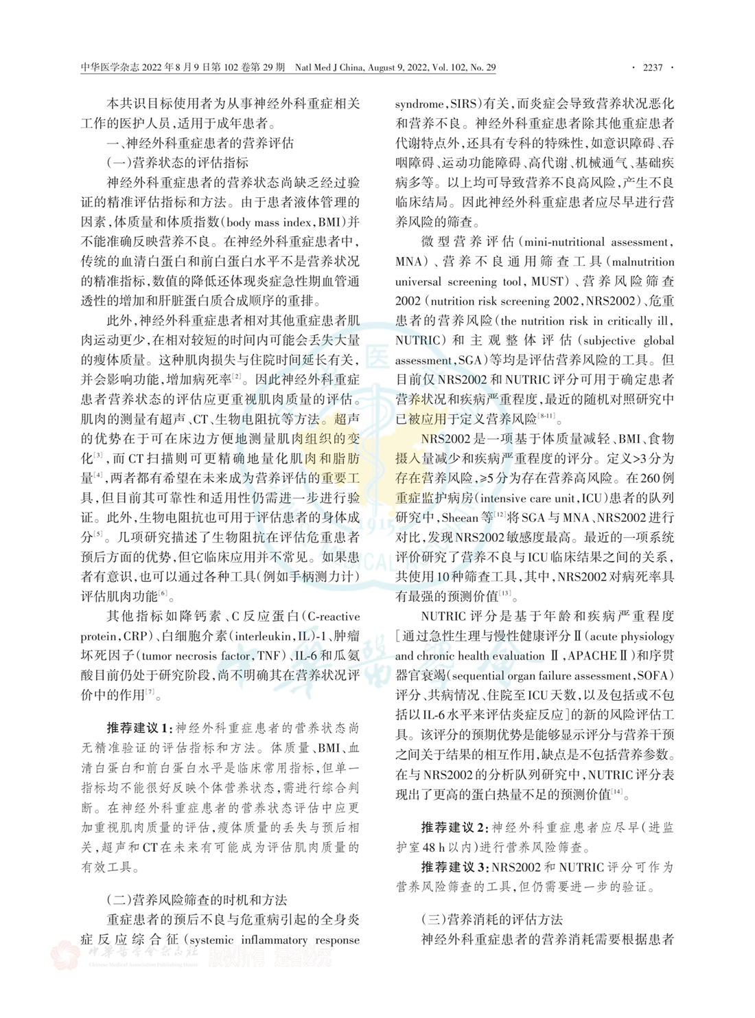 中国神经外科重症患者营养治疗专家共识(2022版)