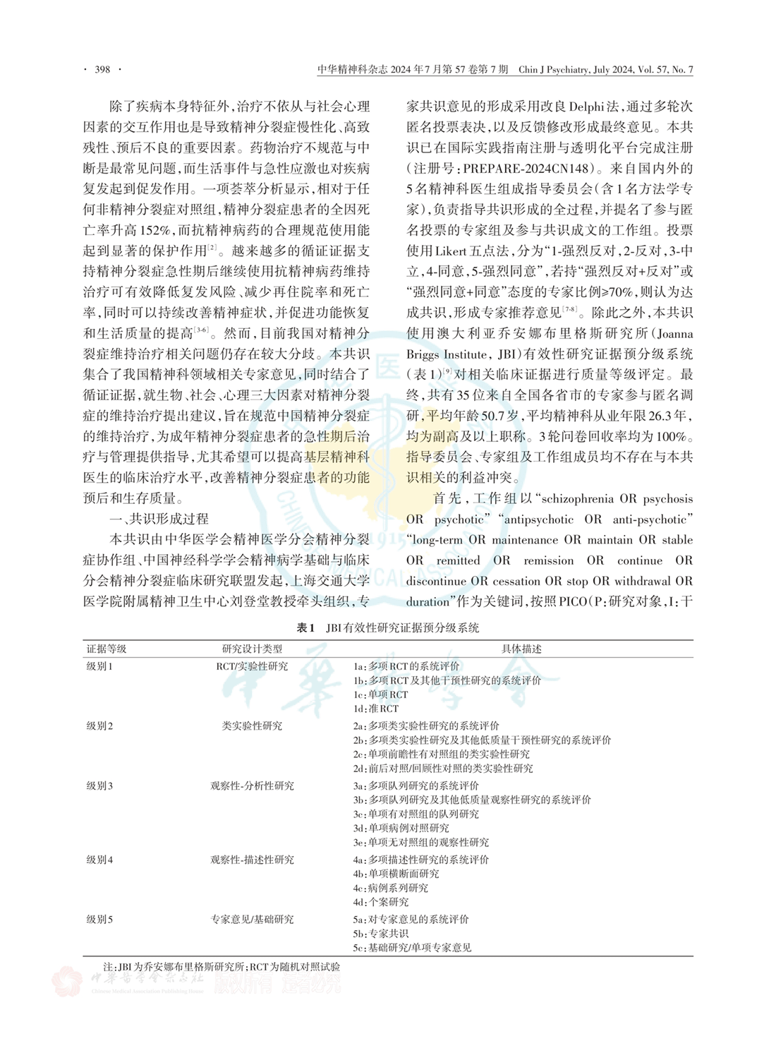 一、共识形成过程 表1 JBI有效性研究证据预分级系统