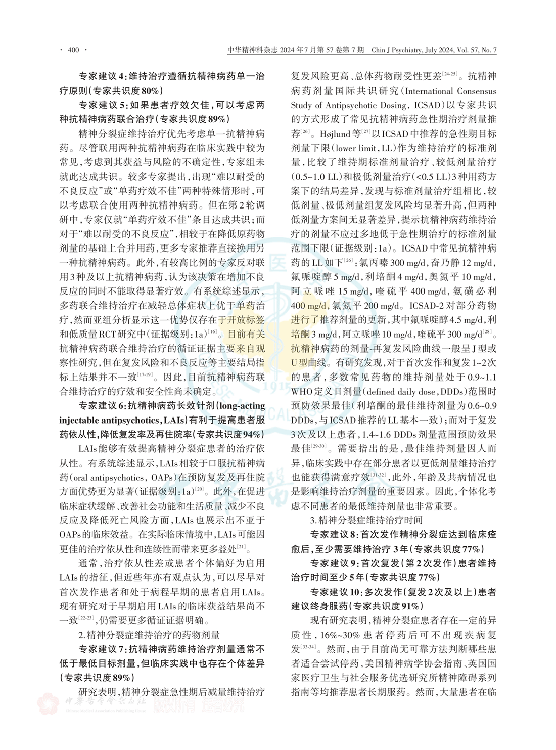 二、精神分裂症维持治疗相关临床问题的专家建议