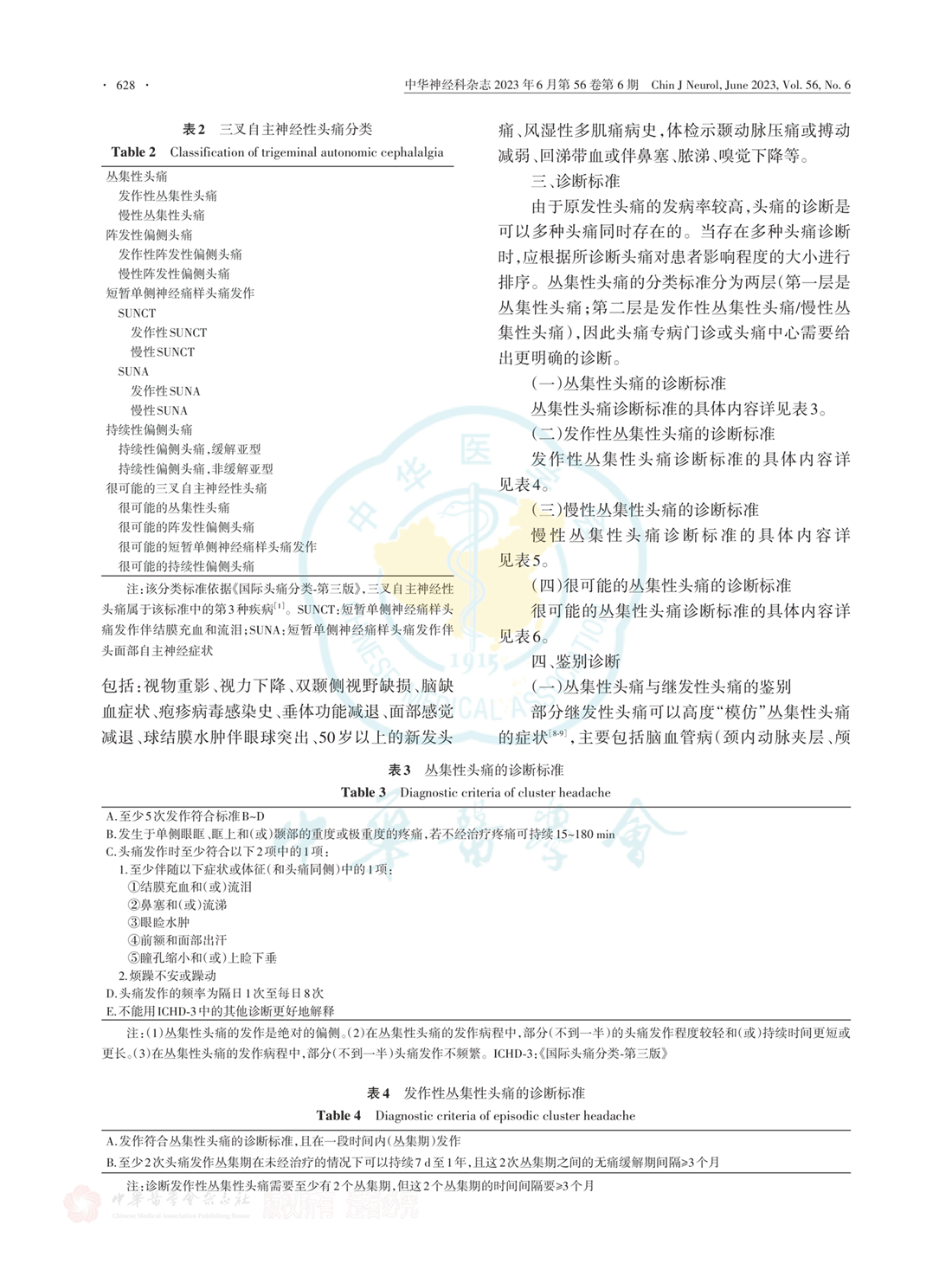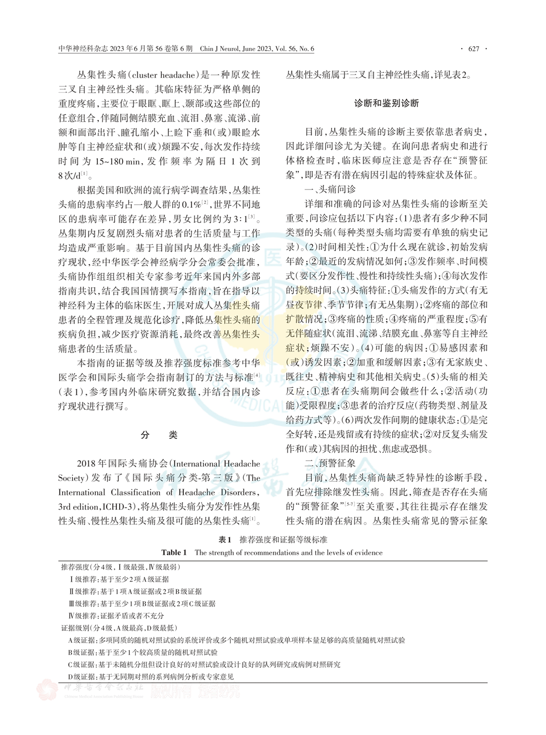 中国丛集性头痛诊断与治疗指南(中华医学会神经病学分会第一版)(2023年)