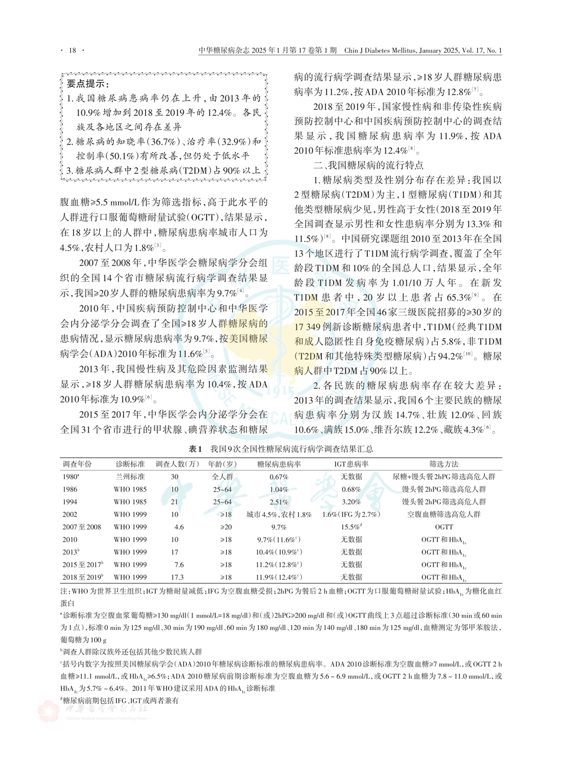 一、糖尿病的流行病学 二、我国糖尿病的流行特点 三、影响因素
