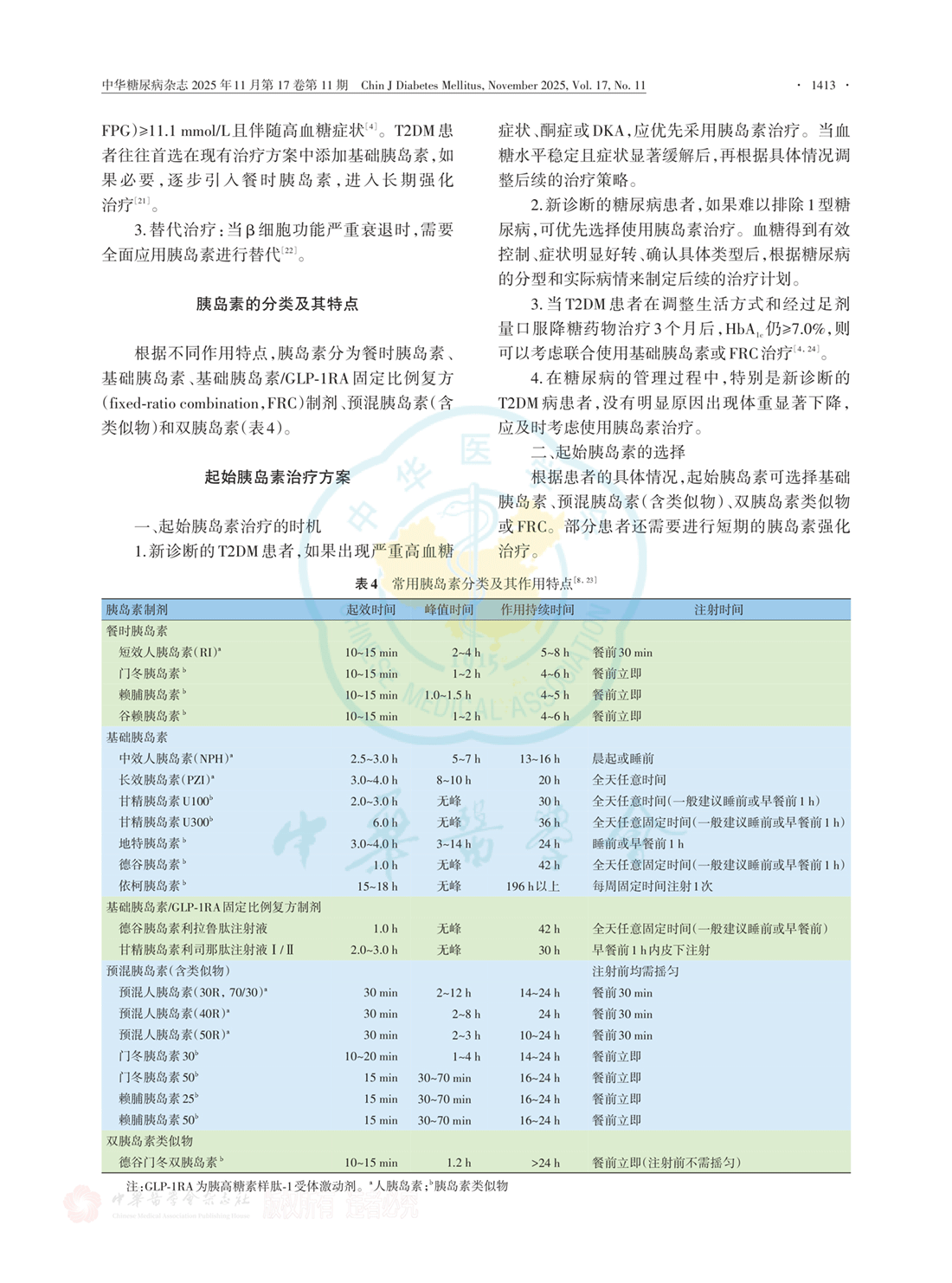 胰岛素的分类及其特点 / 起始胰岛素治疗方案