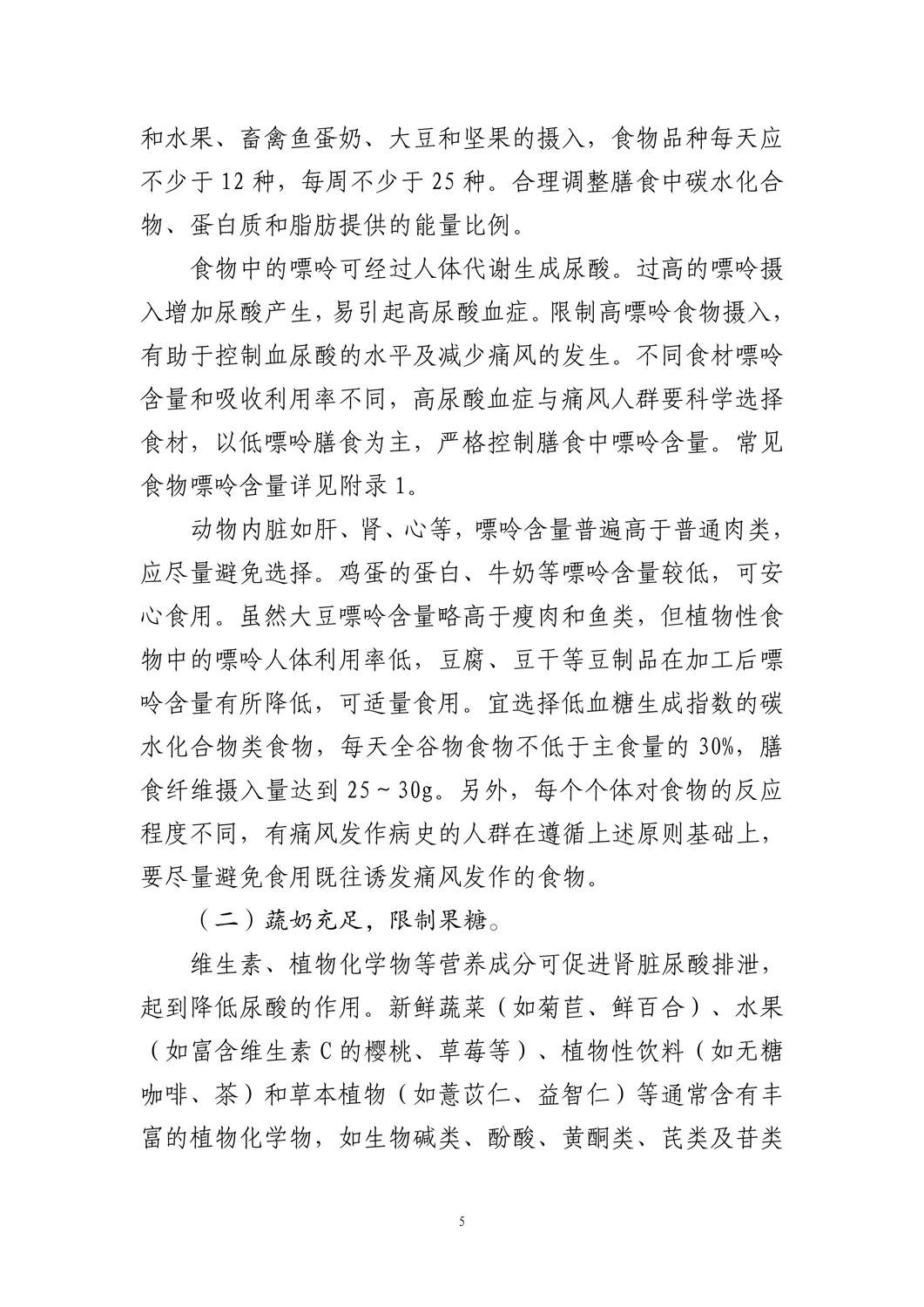 食养原则:食物多样,限制嘌呤/蔬菜充足,限制果糖