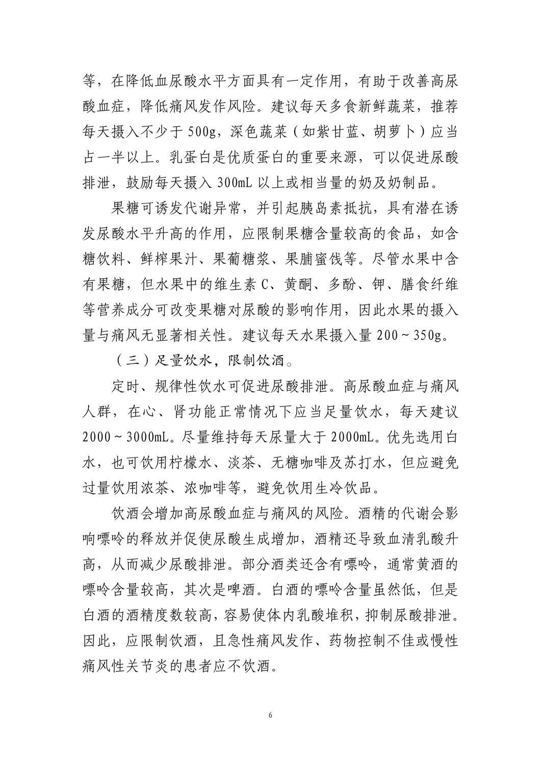 食养原则:食物多样,限制嘌呤/蔬菜充足,限制果糖