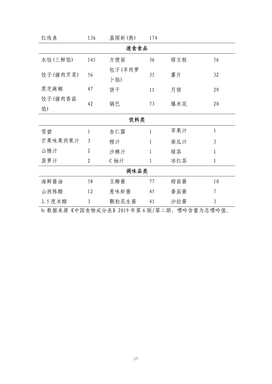 食物嘌呤含量:速食食品,饮料类,调味品类