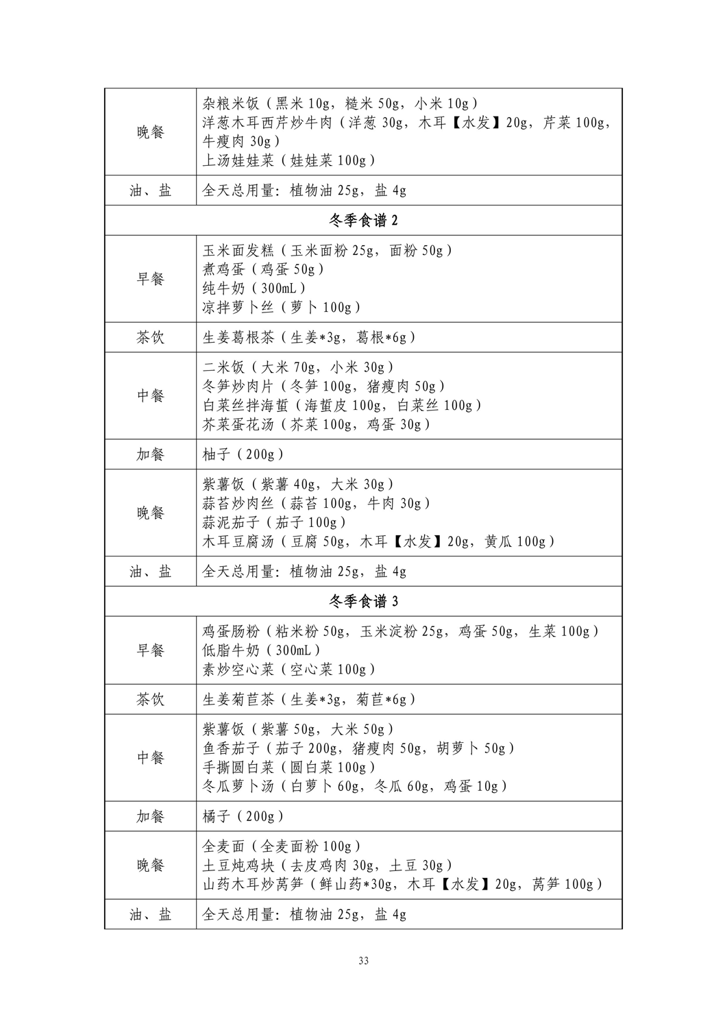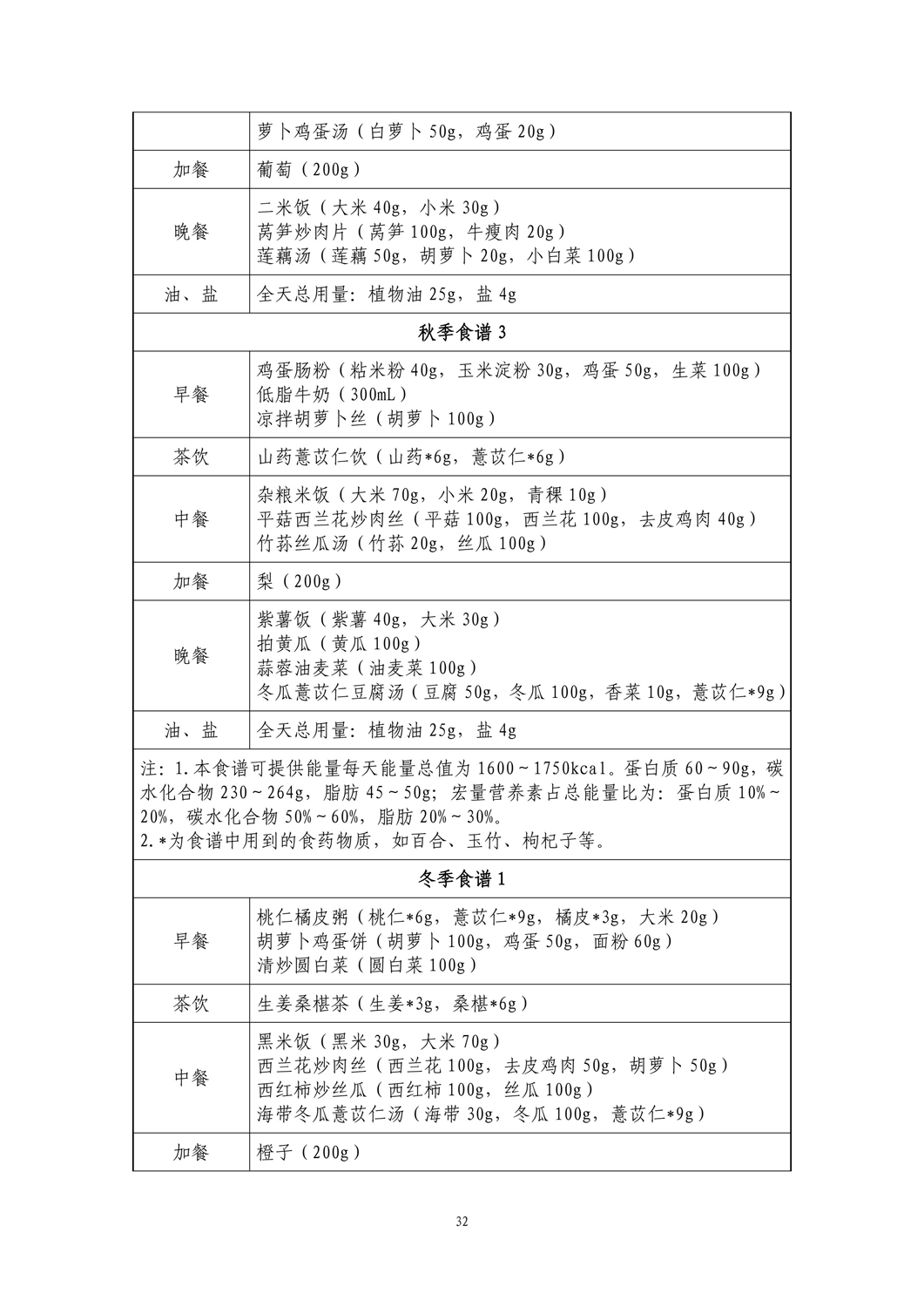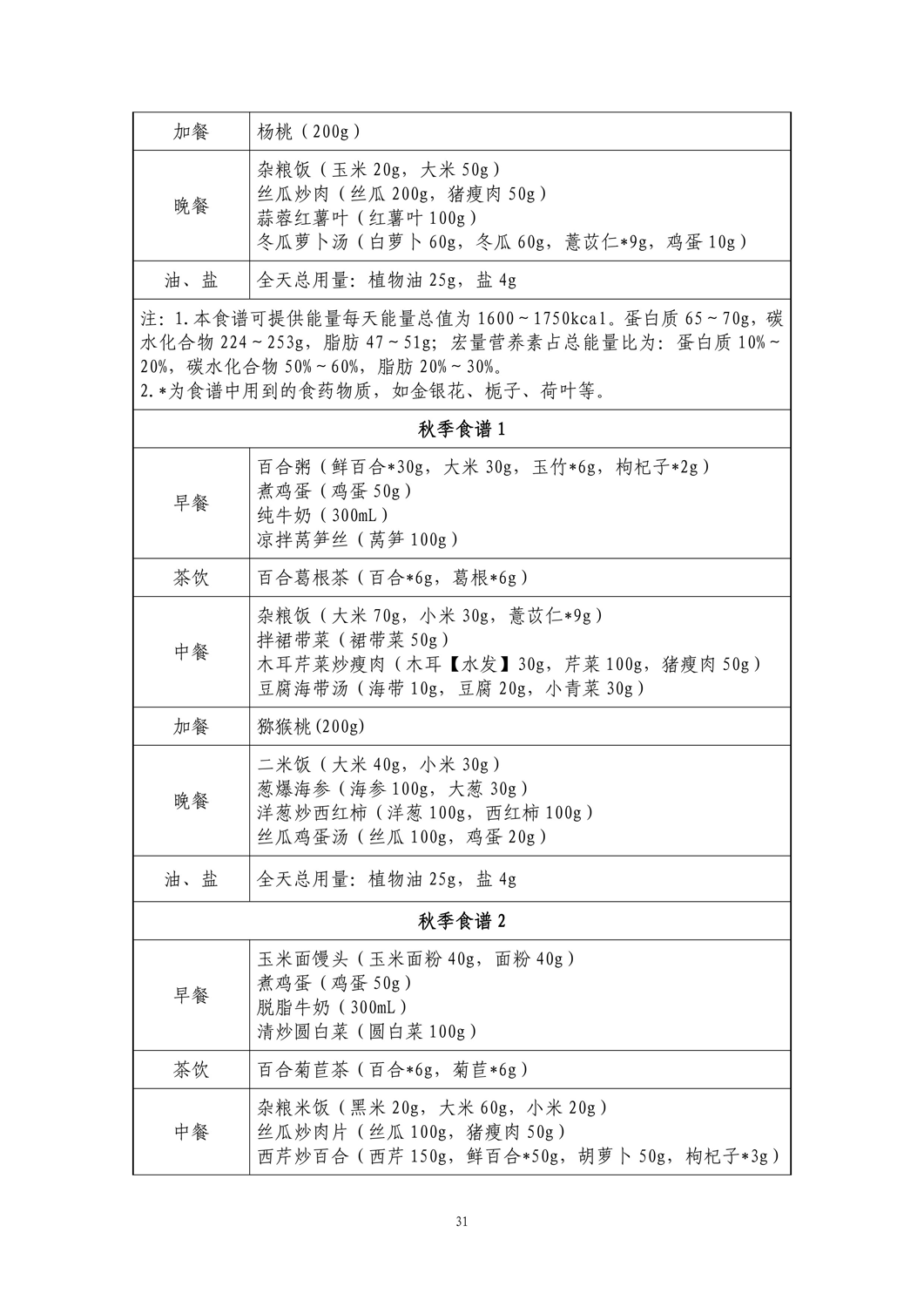 间歇期高原地区:春季、夏季食谱