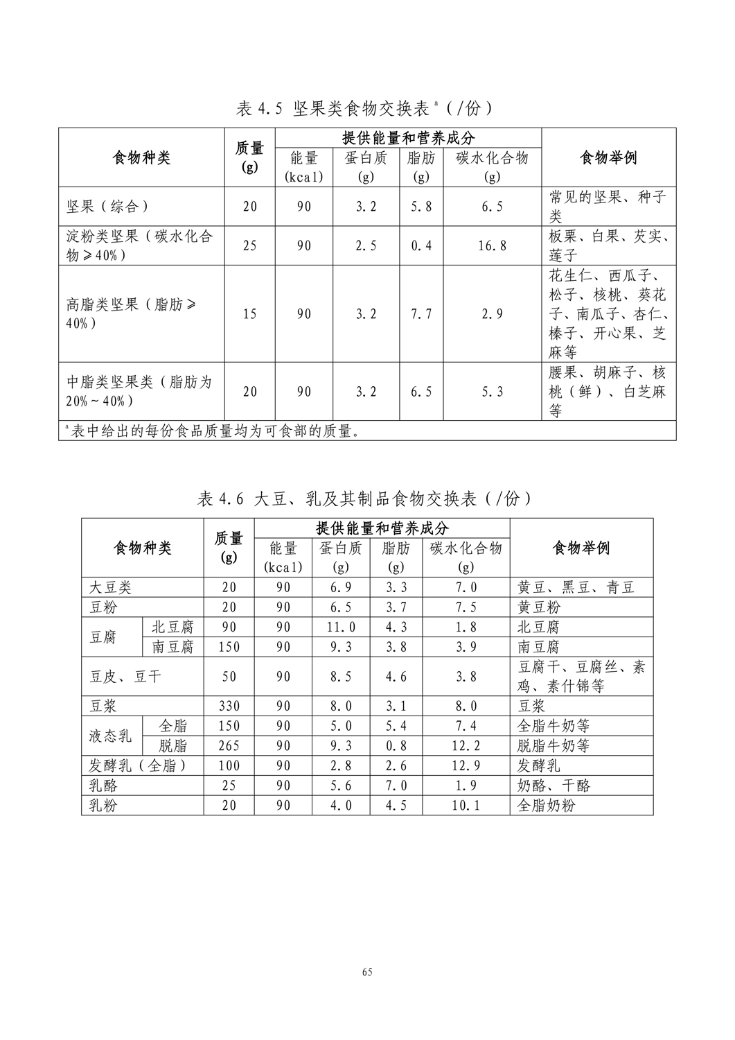 坚果类,大豆、乳及其制品食物交换表