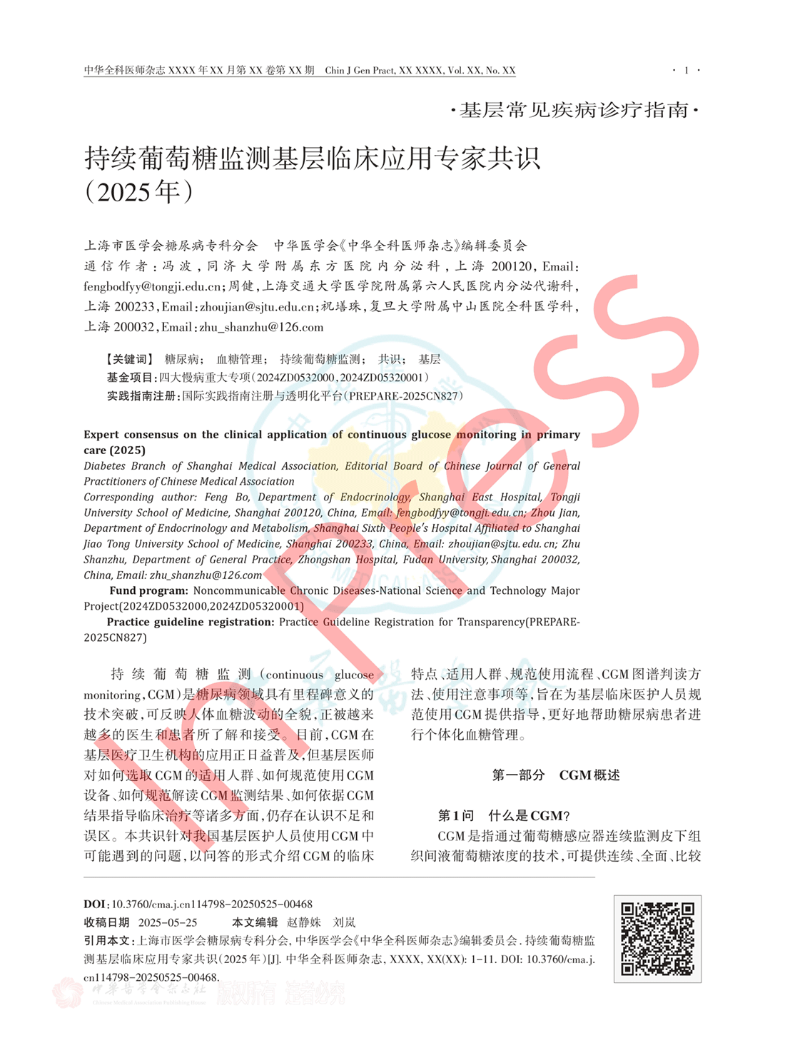 持续葡萄糖监测基层临床应用专家共识(2025年)