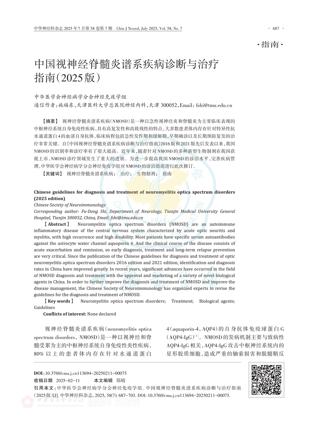 中国视神经脊髓炎谱系疾病诊断与治疗指南(2025版)