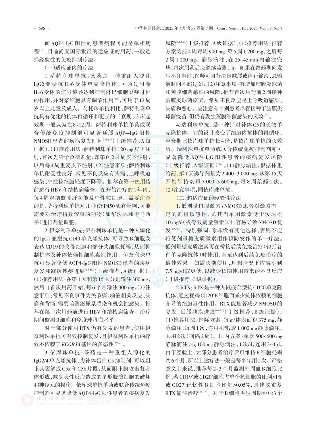 表4 NMOSD的鉴别诊断 表5 不支持NMOSD诊断的警示征