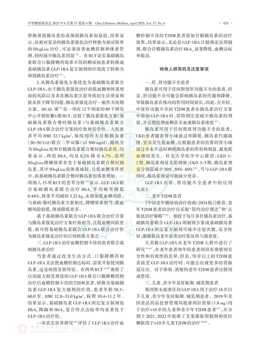 GLP-1RA联合胰岛素治疗的临床应用时机 / 临床应用