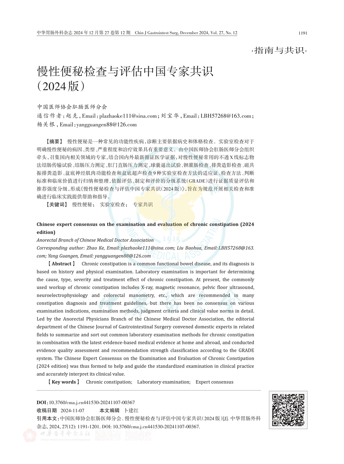 慢性便秘检查与评估中国专家共识(2024版)