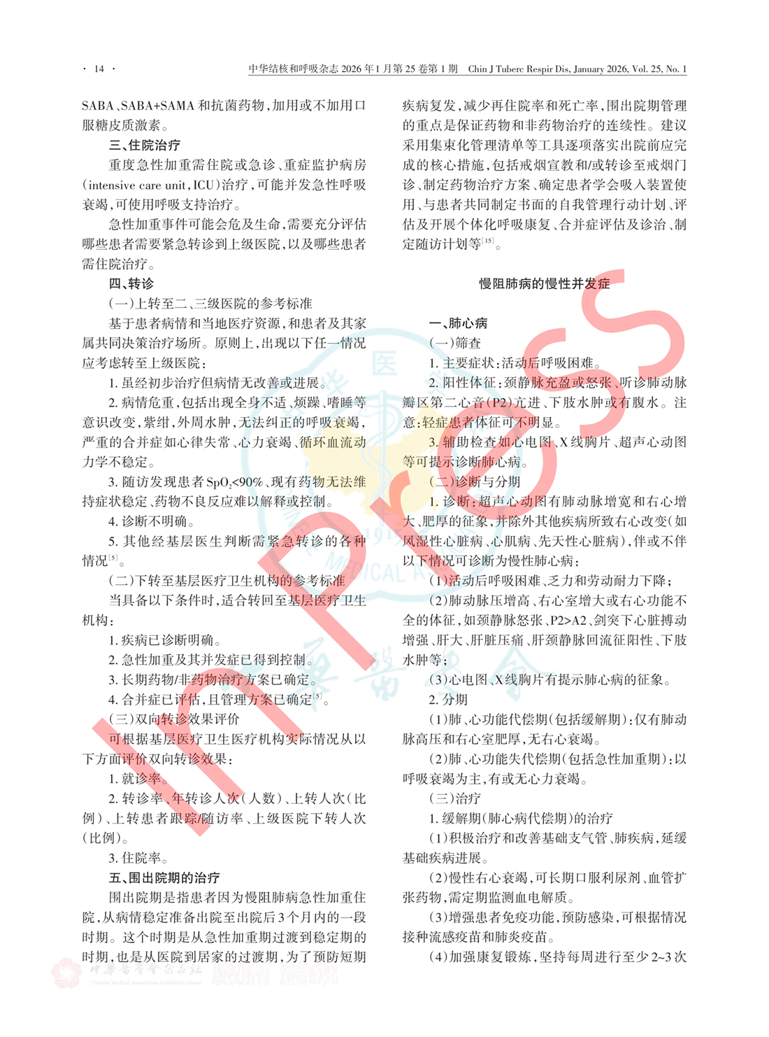 慢阻肺病急性加重期的诊断与治疗 / 慢阻肺病的慢性并发症