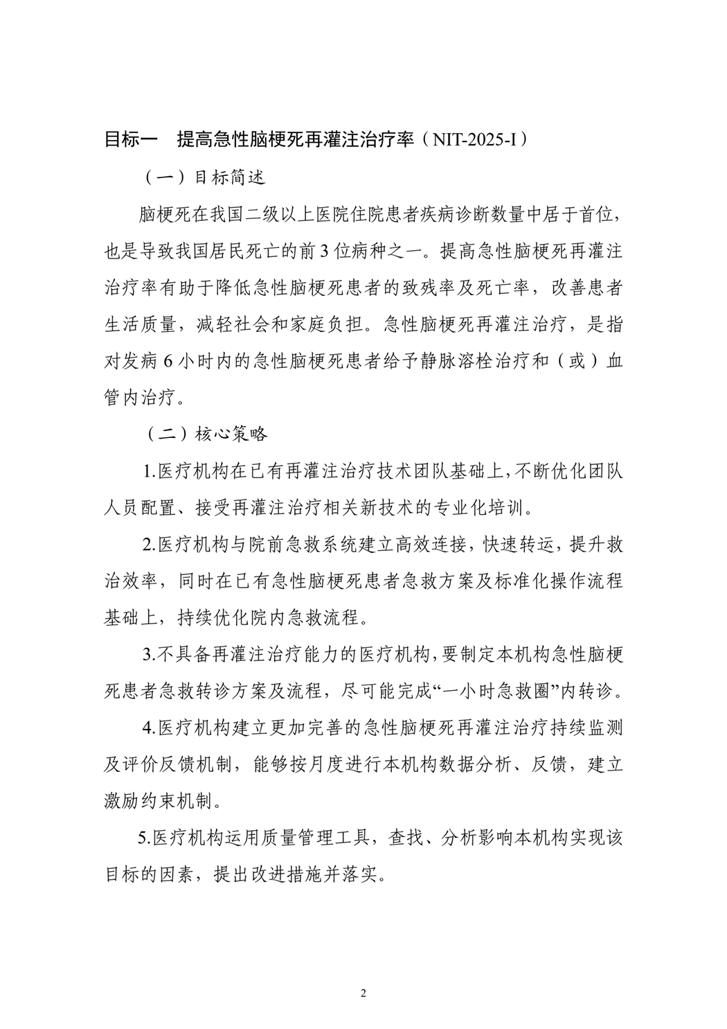 目标一 提高急性脑梗死再灌注治疗率(NIT-2025-Ⅰ)