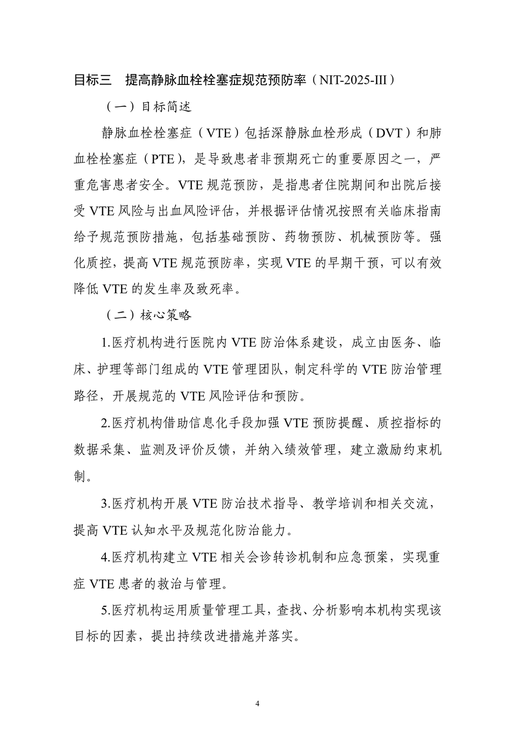 目标三 提高静脉血栓栓塞症规范预防率(NIT-2025-Ⅲ)