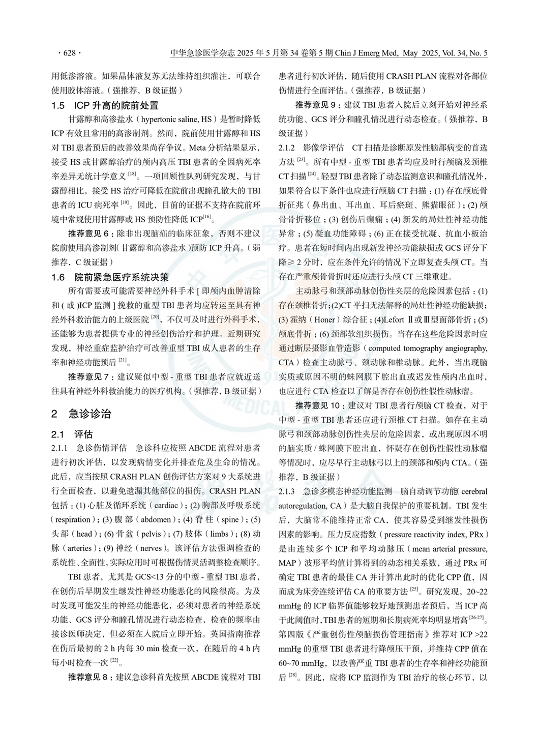 成人创伤性颅脑损伤急诊